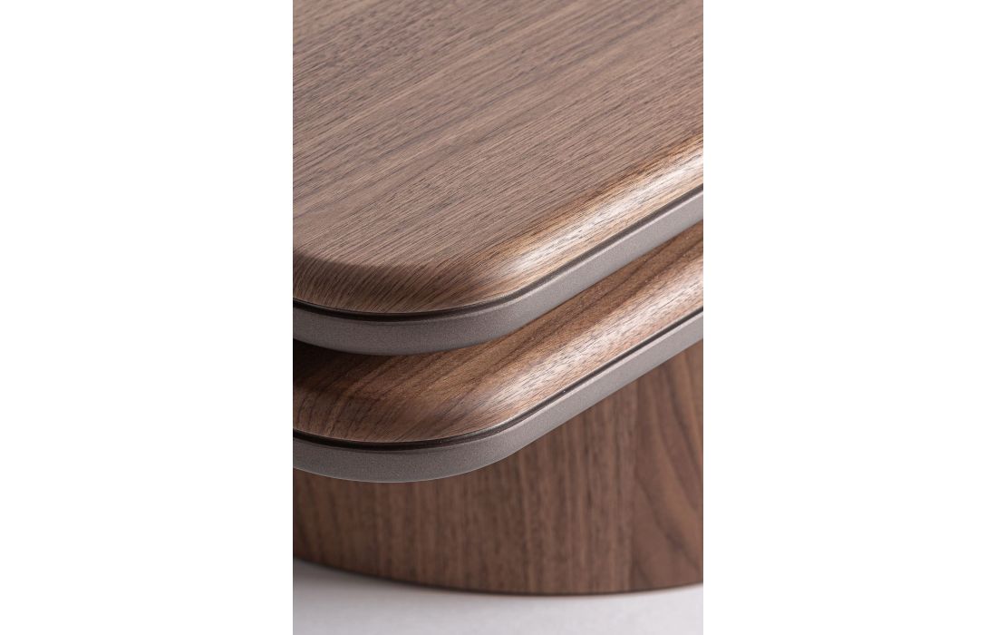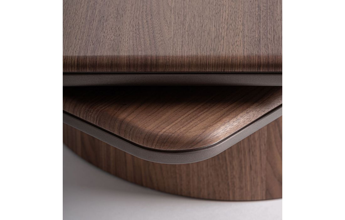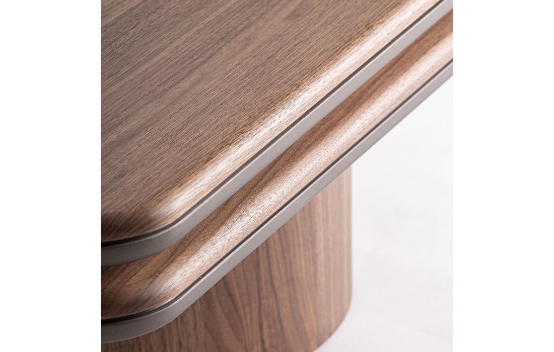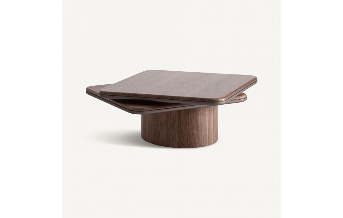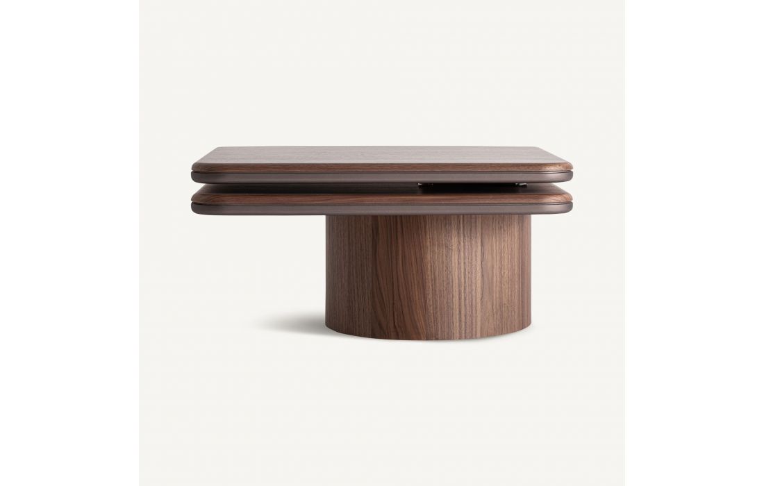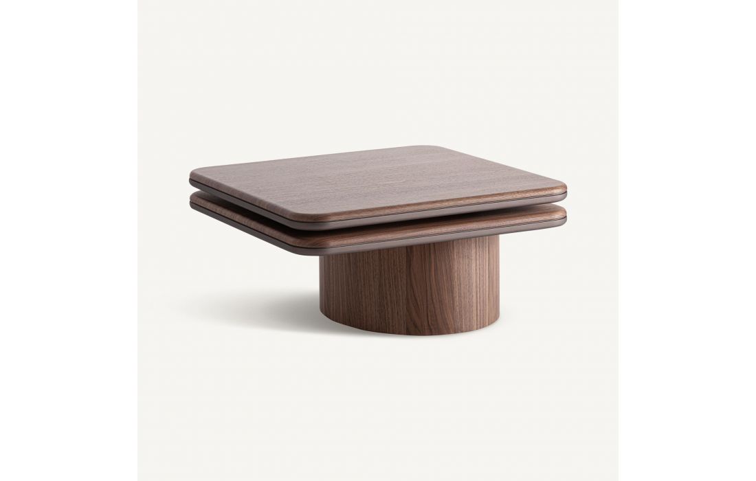 The KEXBY coffee table combines volume, warmth, and contemporary design. Its walnut veneer structure and iron details provide solidity and an elegant air, making it an ideal piece for projects seeking character and aesthetic balance.