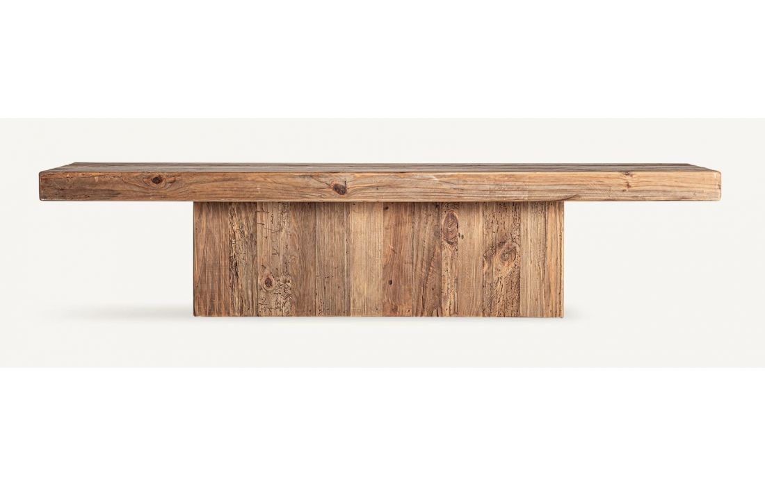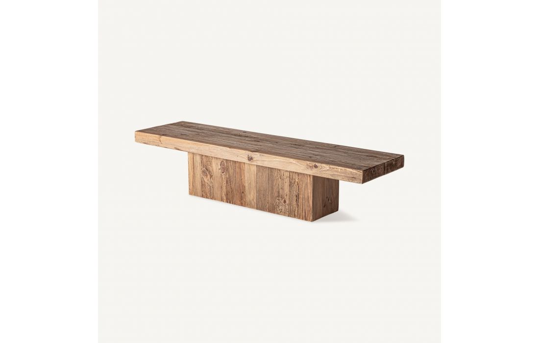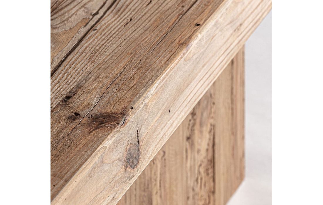 Rediscover natural beauty with this coffee table.Made from recycled pine wood with an aged finish, this rustic piece conveys authenticity and warmth.Its generous surface and texture make it the perfect addition.