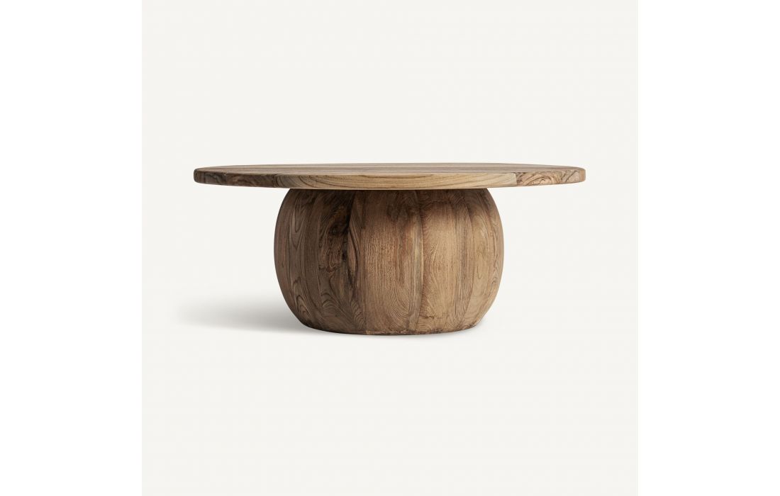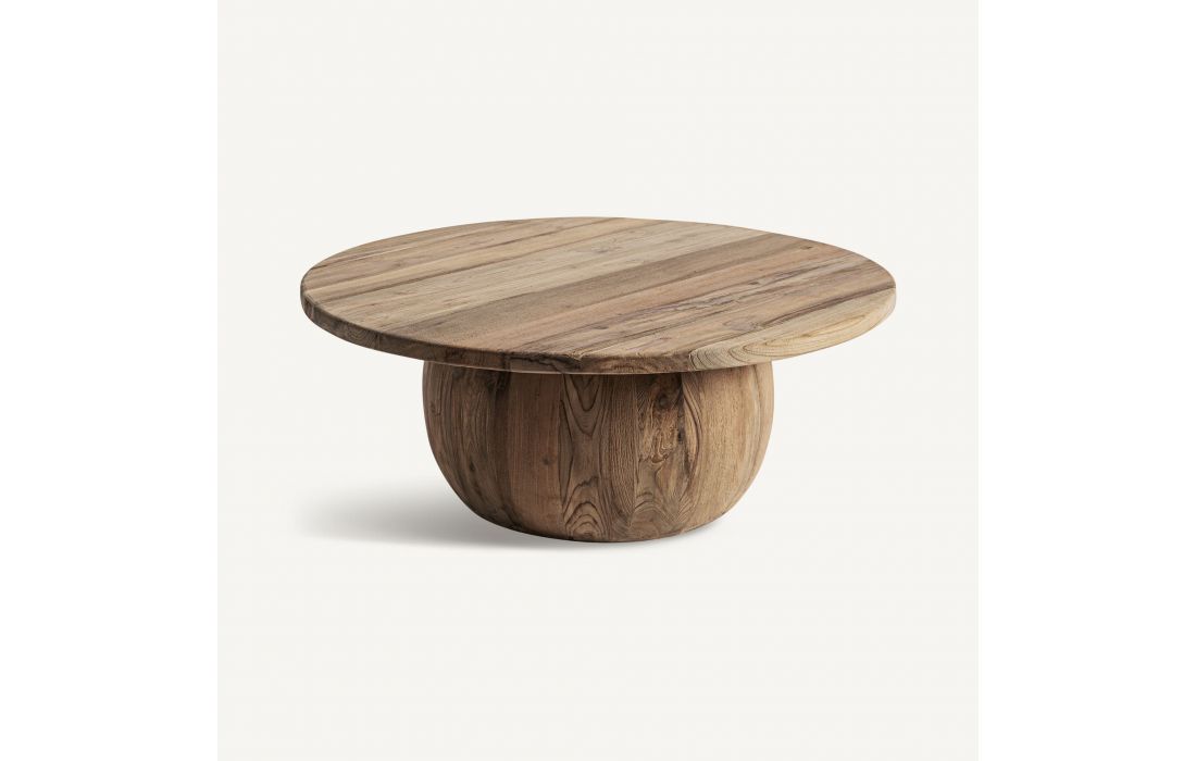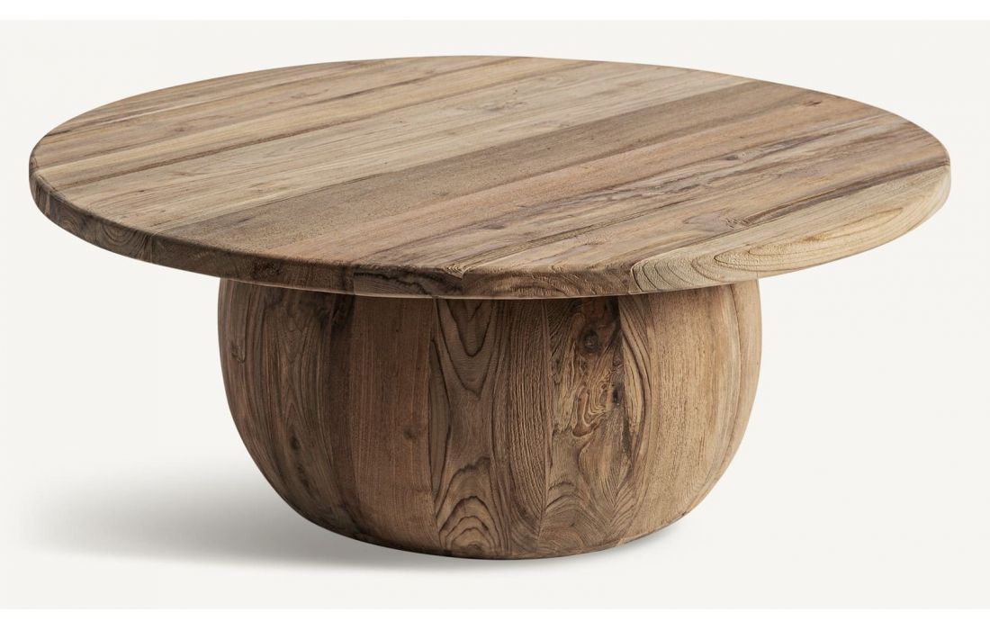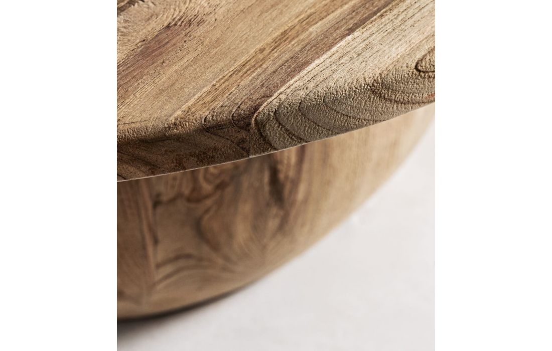 This coffee table, carved from recycled teak wood, has an aged finish and shadow that reveal the mark of time and the nobility of the material.A piece that brings authenticity and character to the most natural spaces.