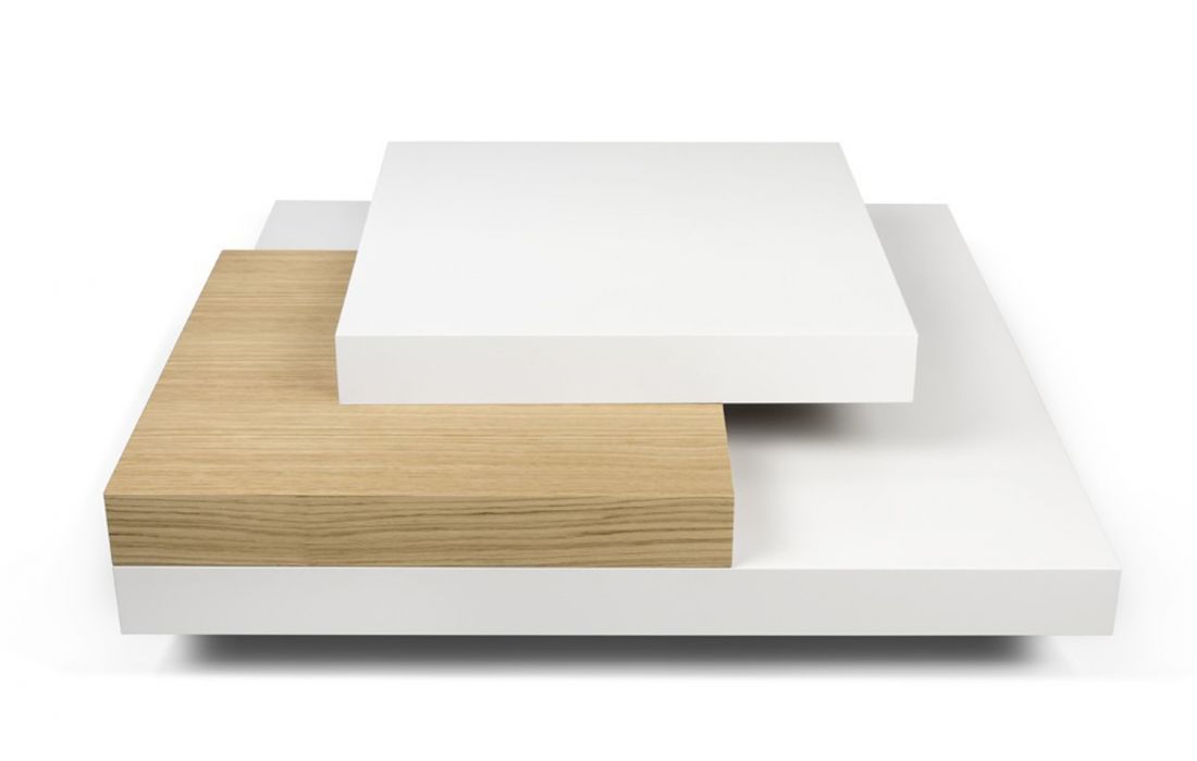 The various levels of this unique coffee table is a smart solution for organizing your remote controls, magazines and other small objects in your living room while introducing movement because of its forms.