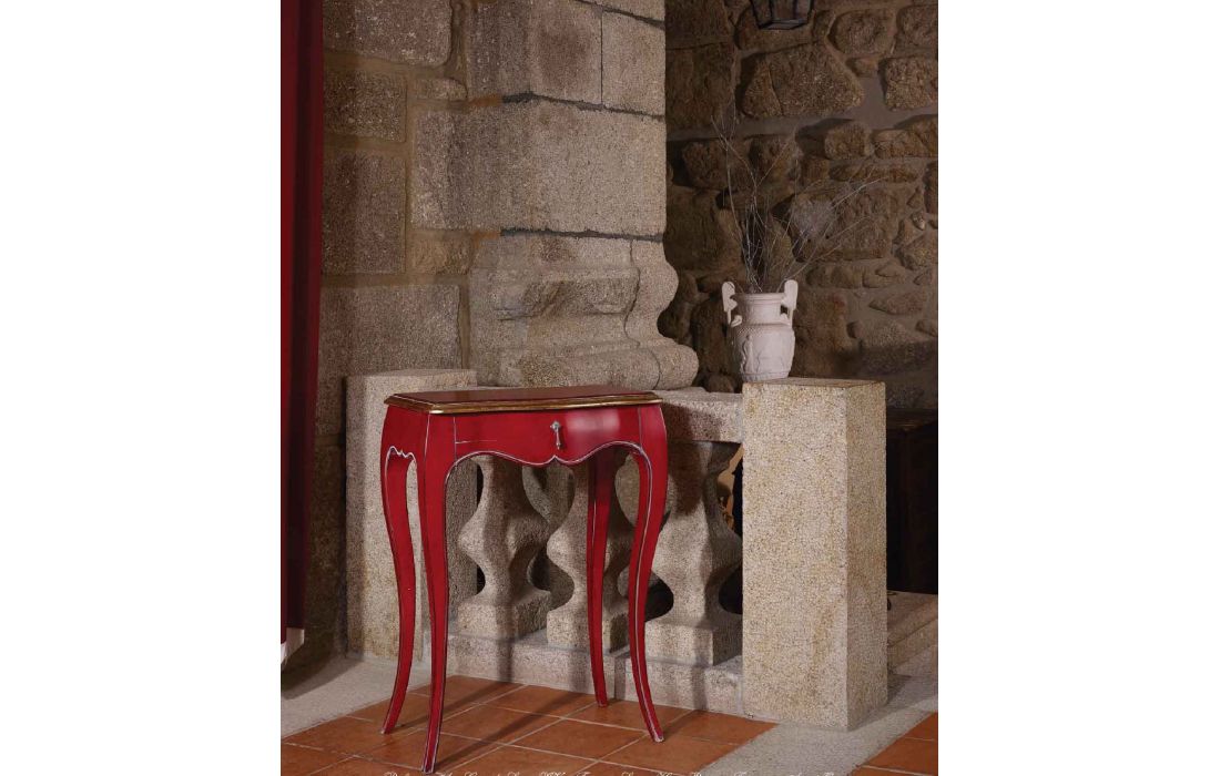 Console with 1 drawer, provencal design and detail in gold leaf, with the possibility of several finishes.
