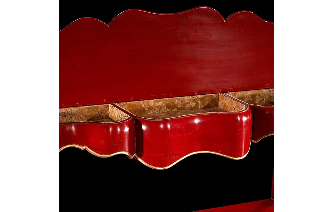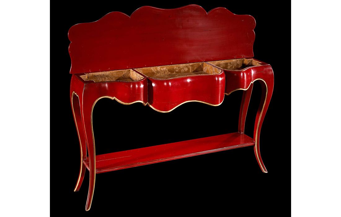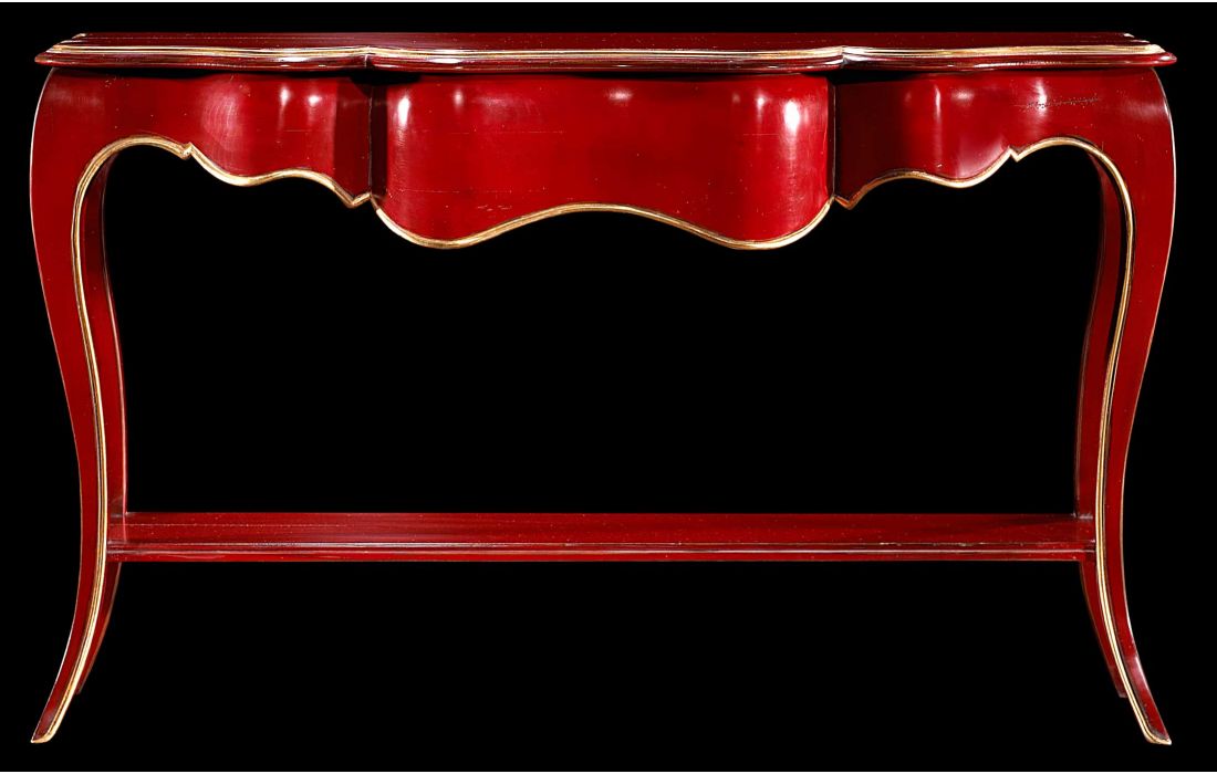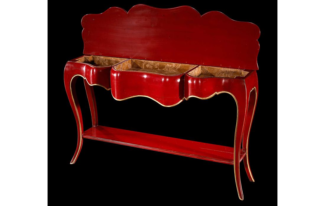 Console with curved top detail in the form of safe, Provençal design and detail in gold leaf, with the possibility of several finishes.