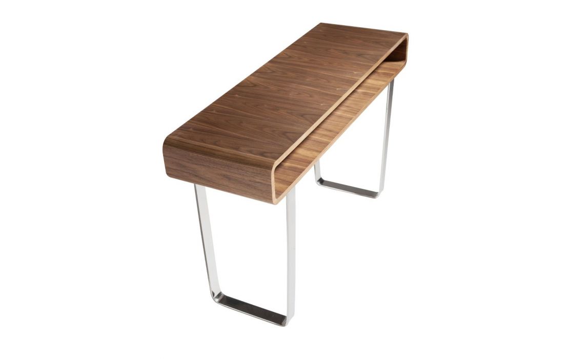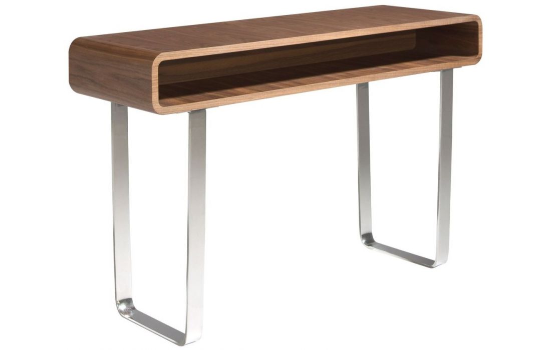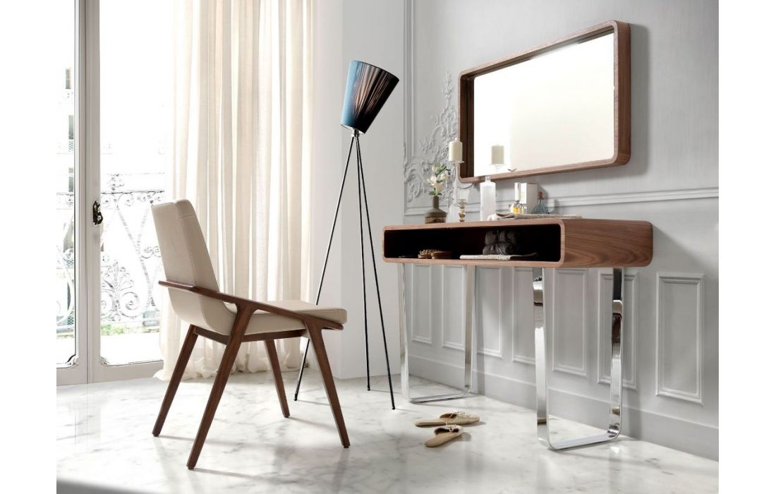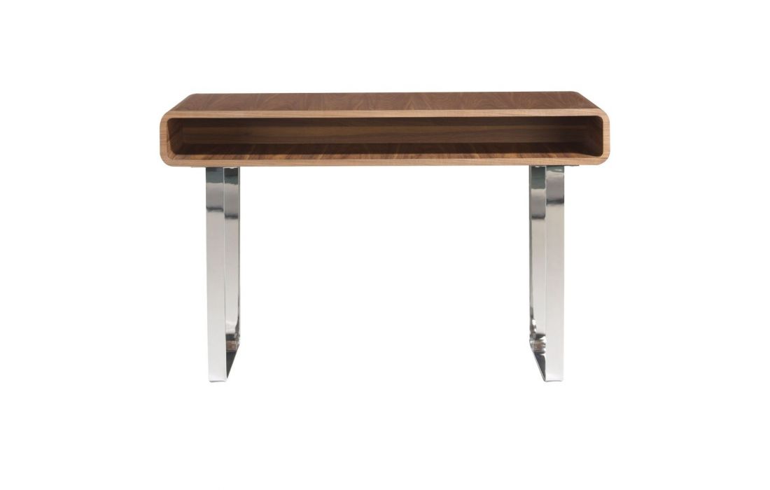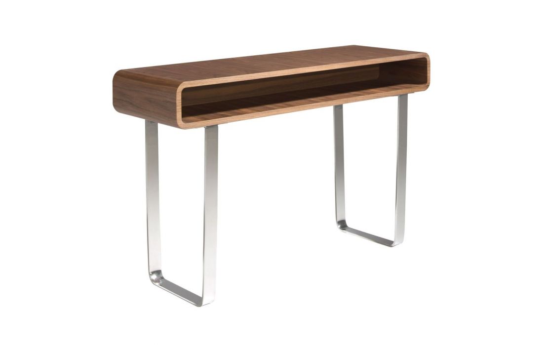 Rectangular console with a modern design, made of natural walnut MDF and stainless steel legsRecipient :