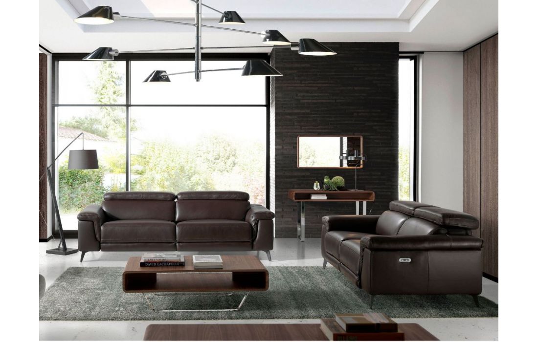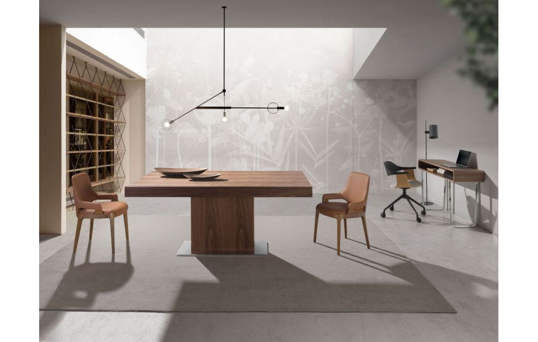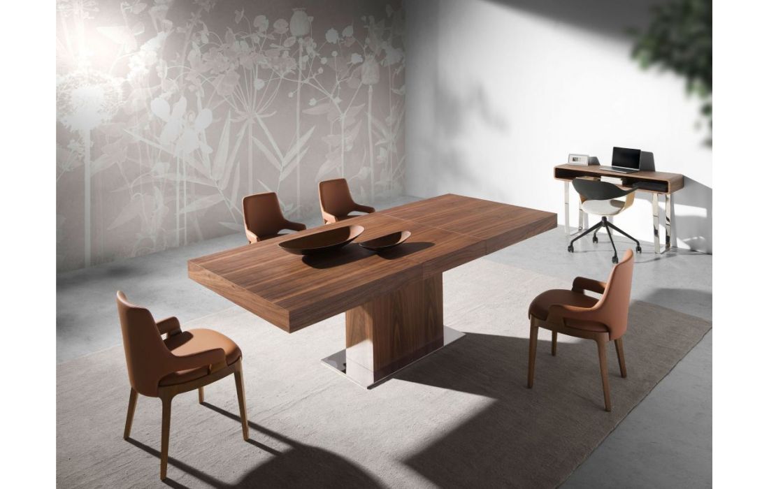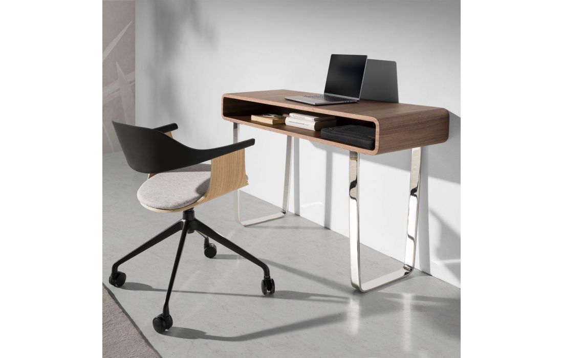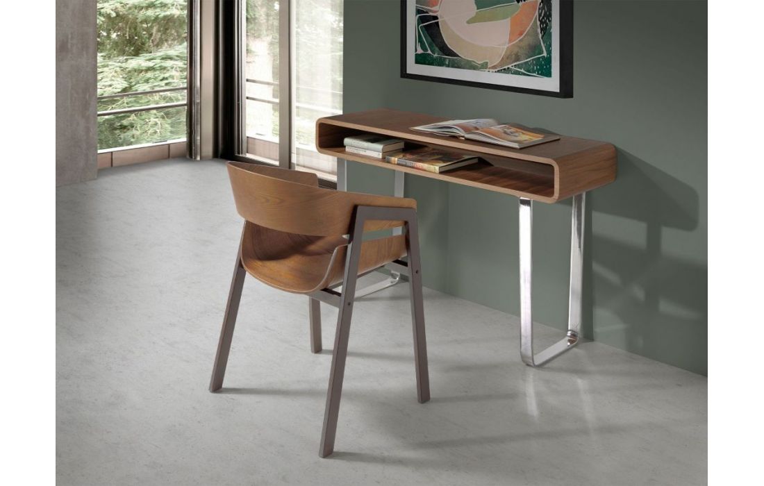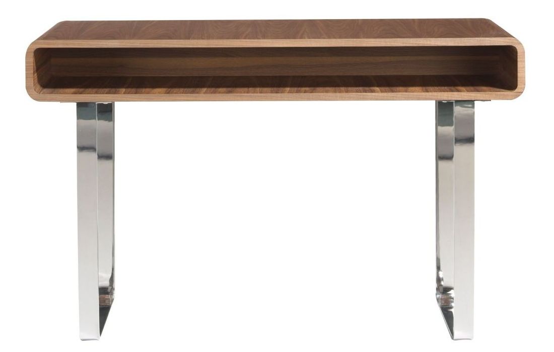 Rectangular console with a modern design, made of natural walnut MDF and stainless steel legsRecipient :