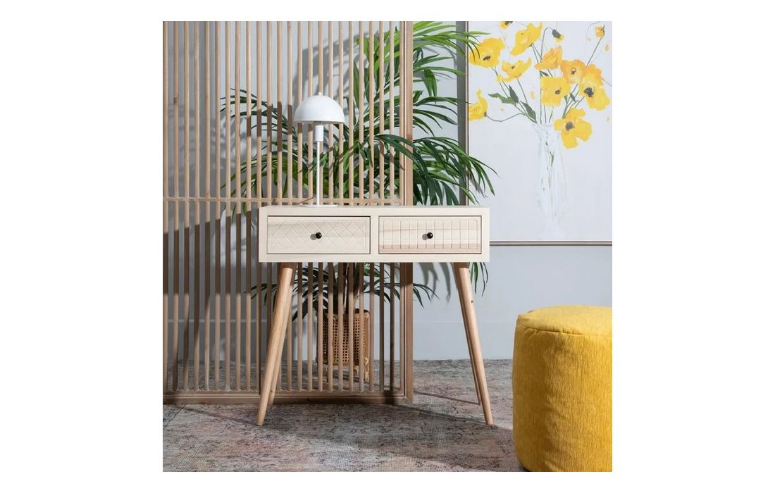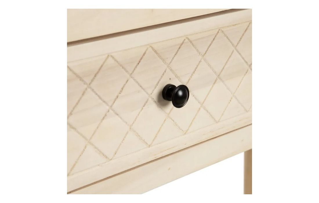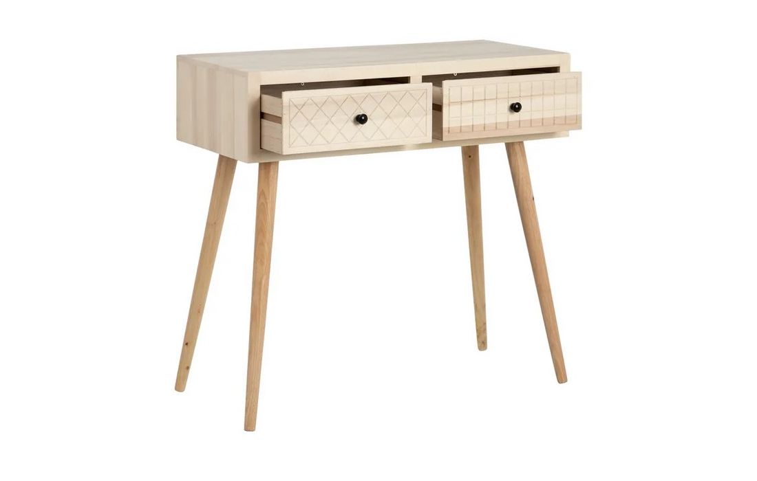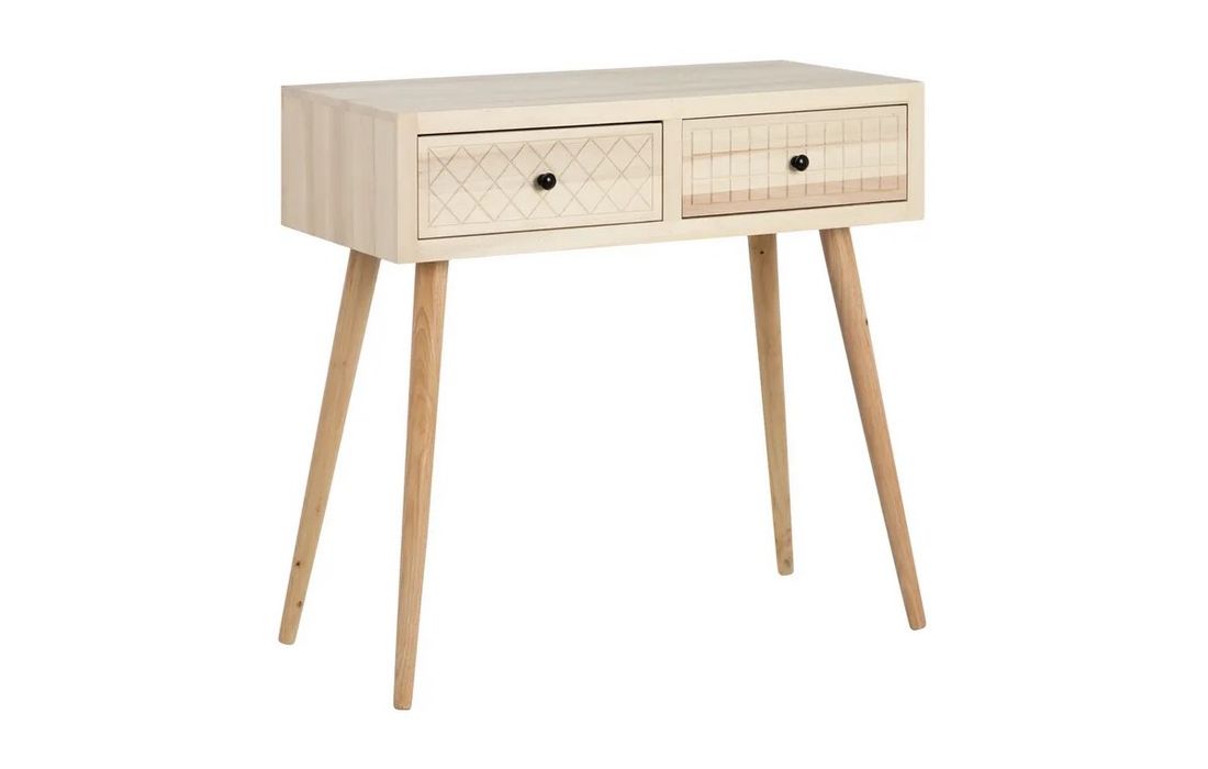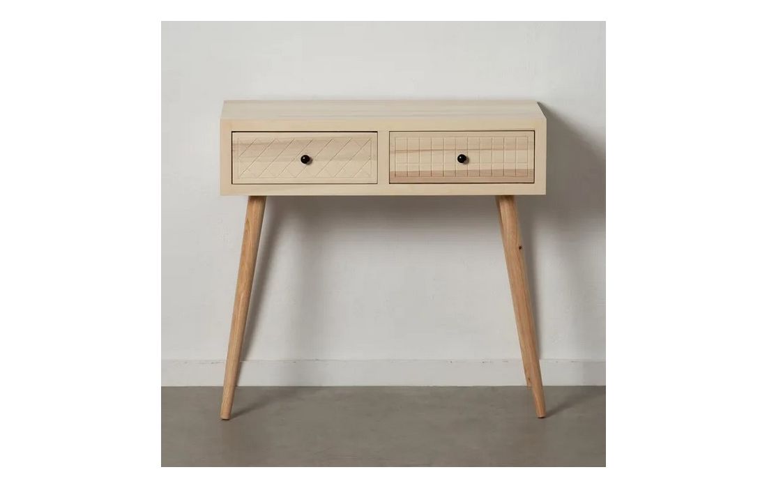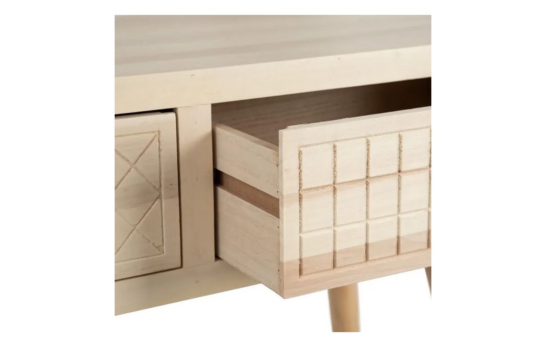 Console made of poplar wood and mdf, in natural color, with 2 drawers.