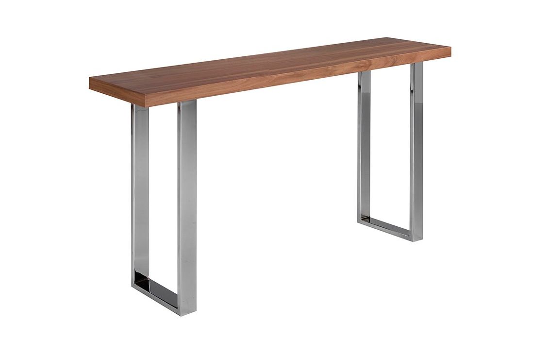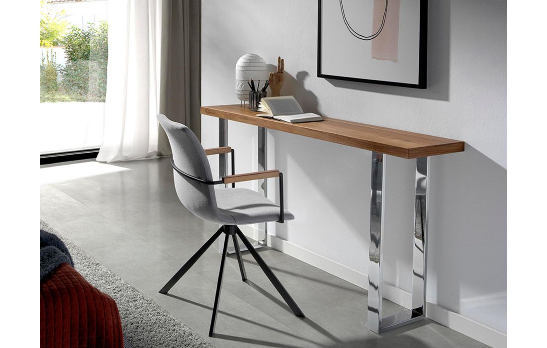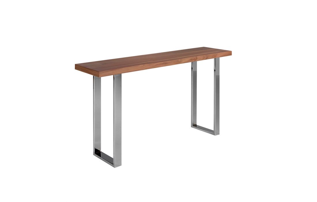 Console in walnut wood, 0.5 mm thick and feet in chrome-plated stainless steel.