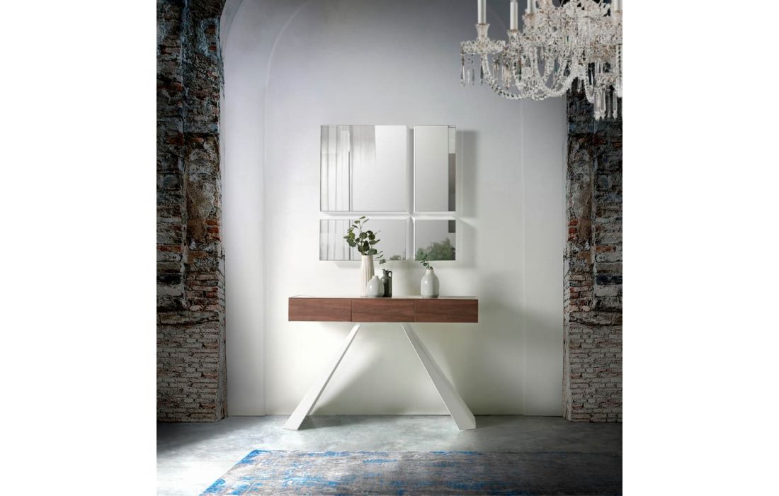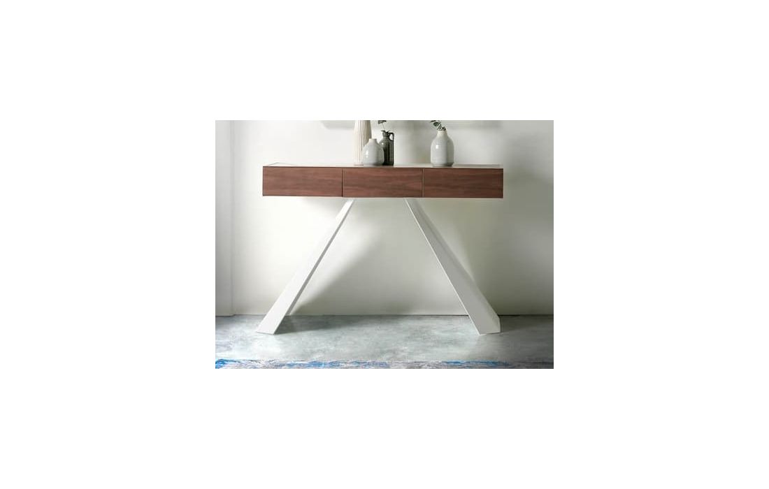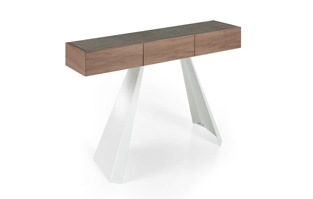 Console with 3 drawers, in wood with ceramic top and metal feet