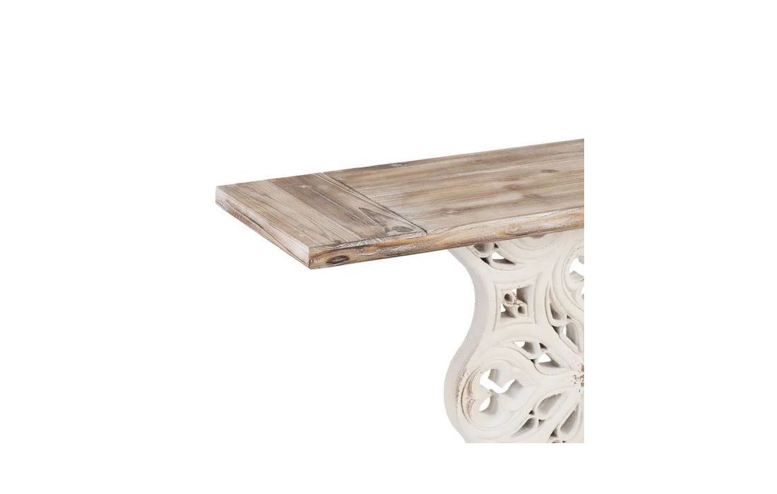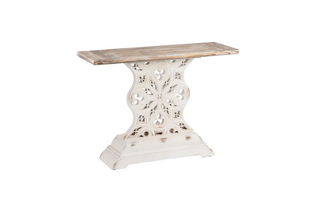 Console table made of spruce wood and pinkish white MDF