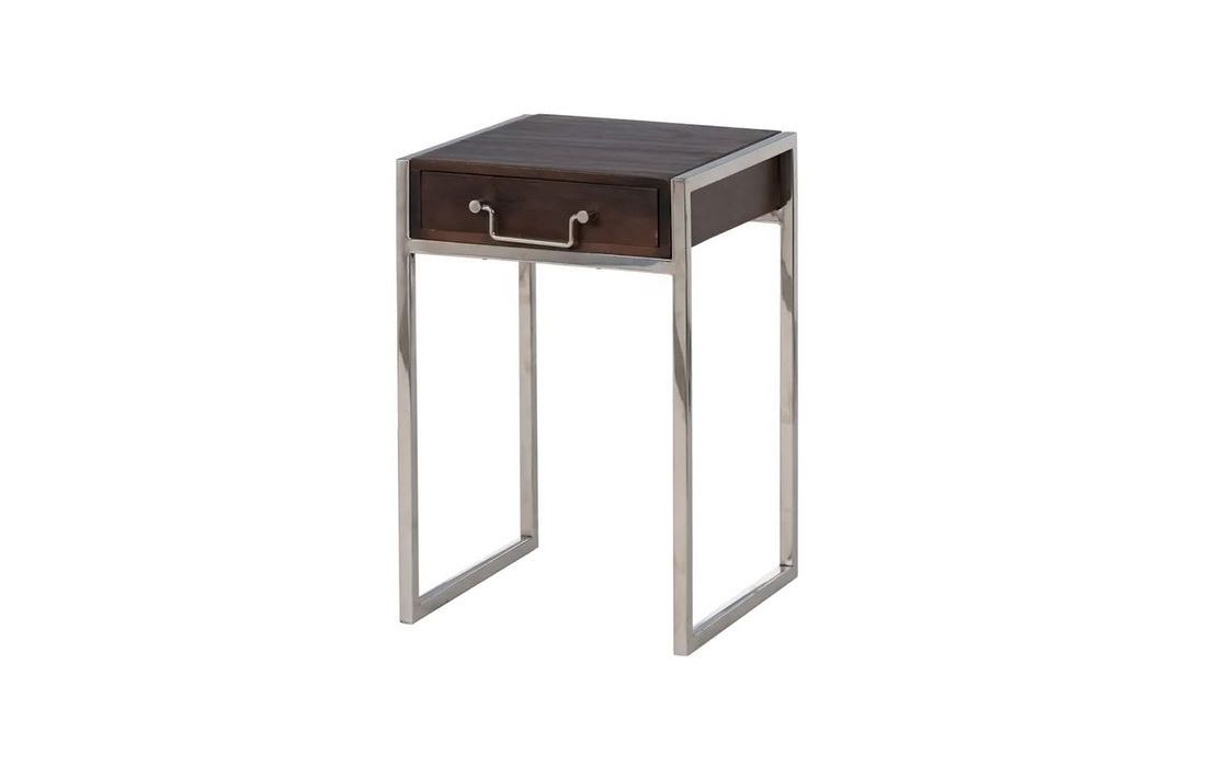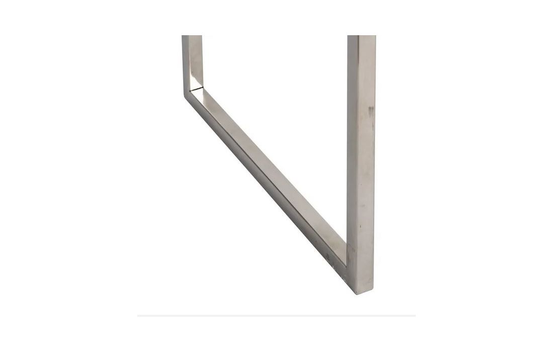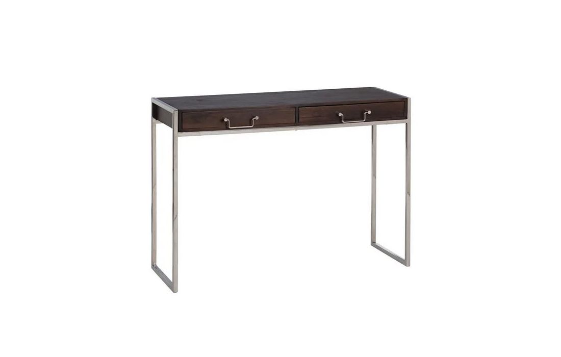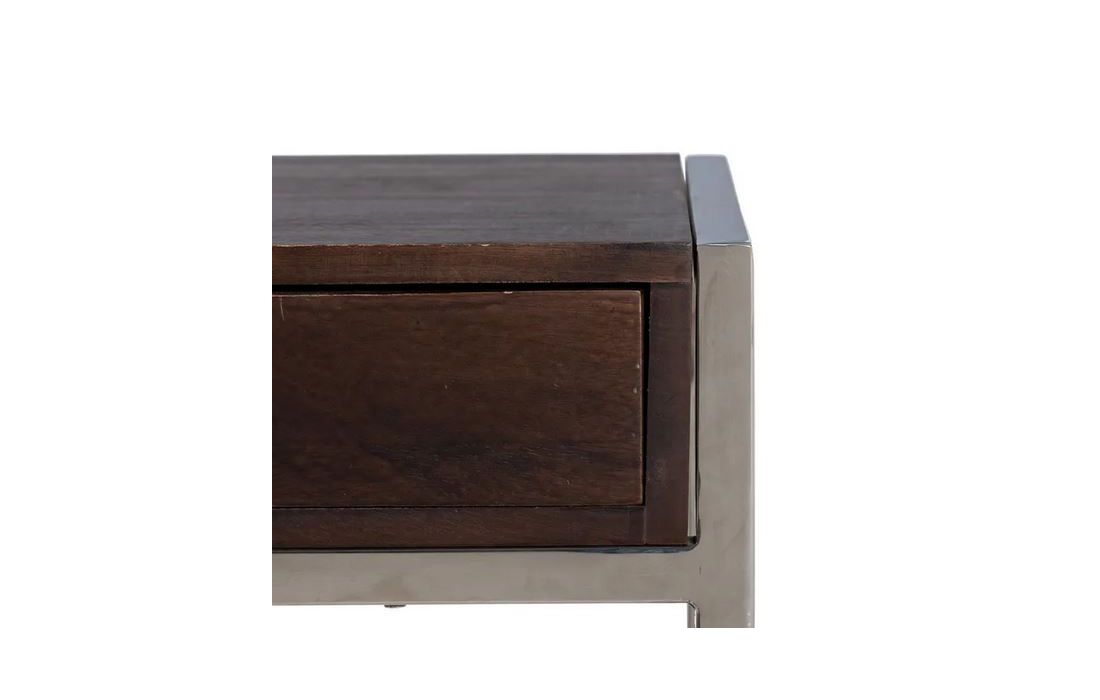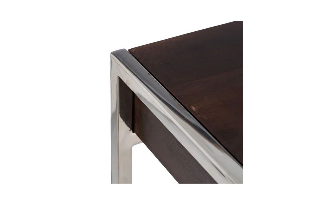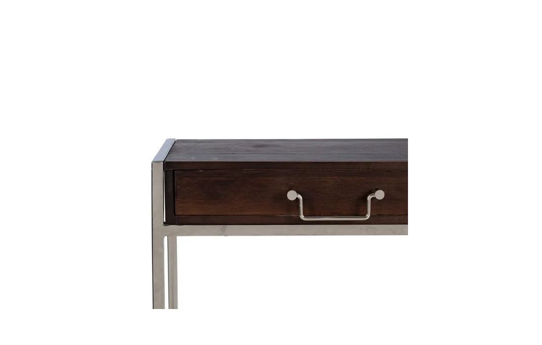 Console set and 2 side tables with silver metal structure and acacia wood top