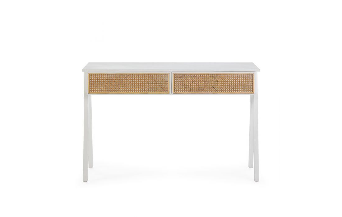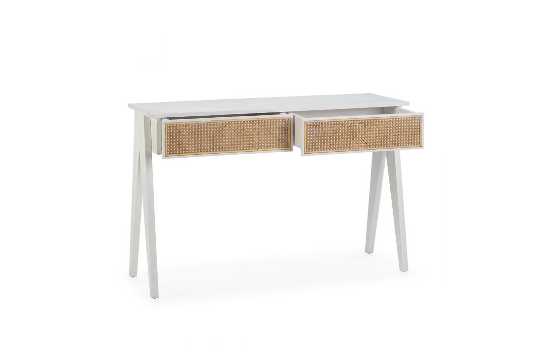 Console in cedar wood and wicker.