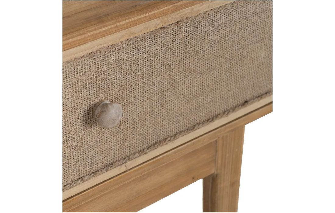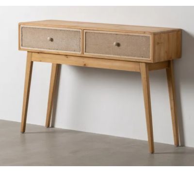 Hallway console in natural colored wood.