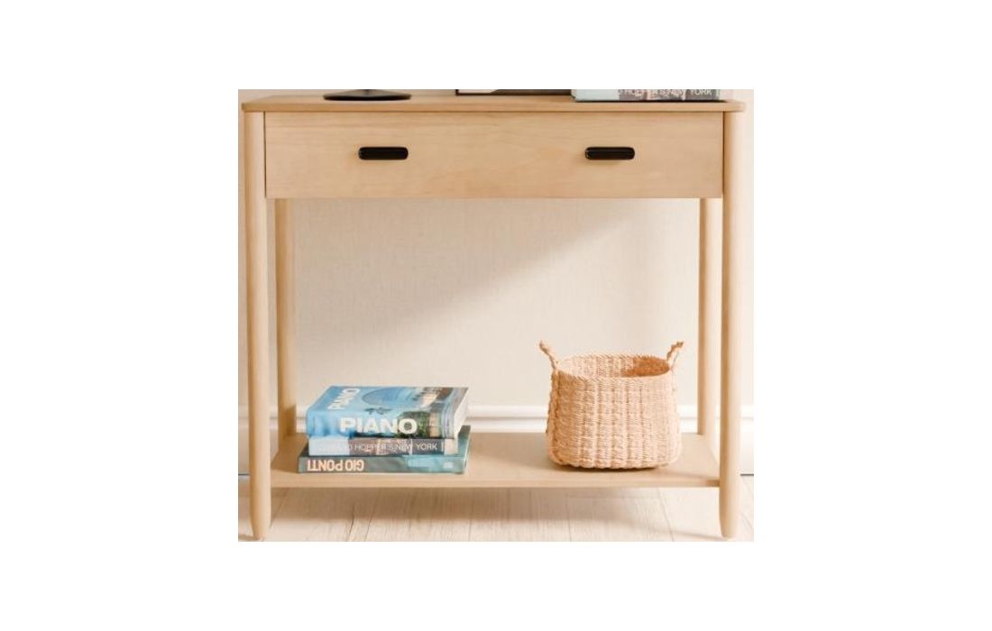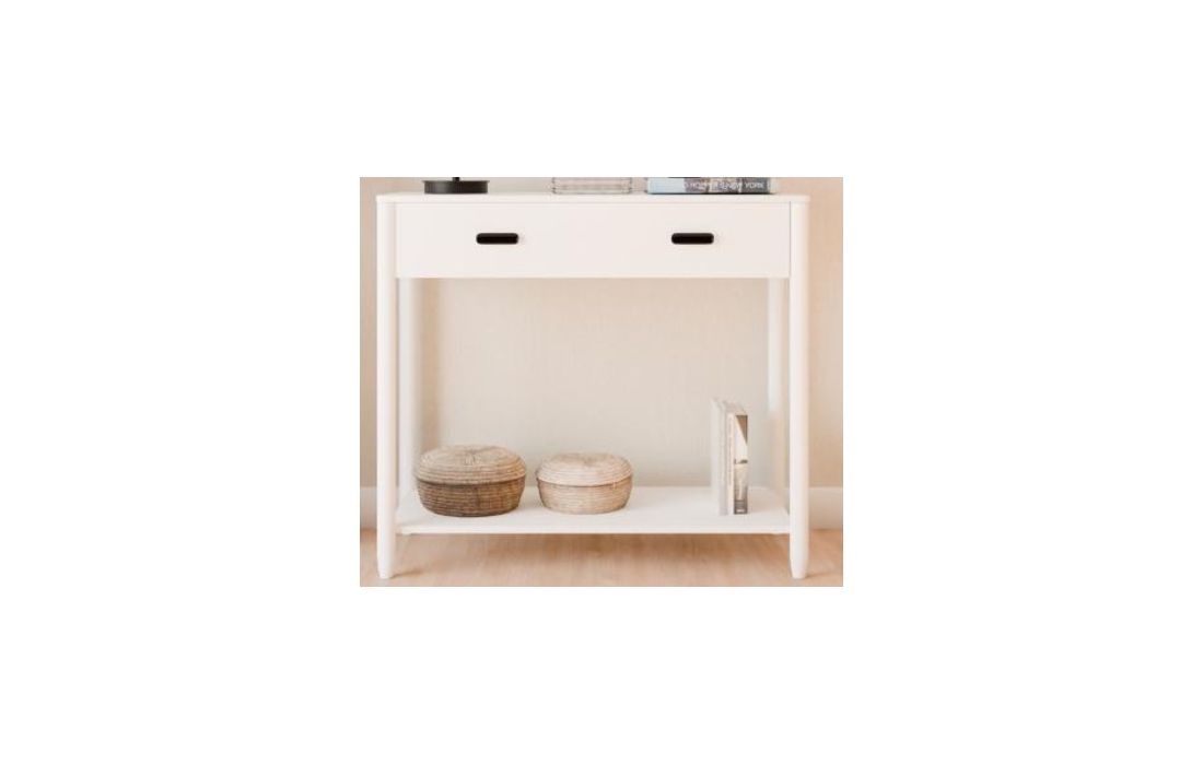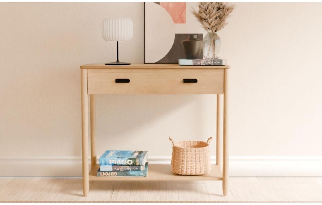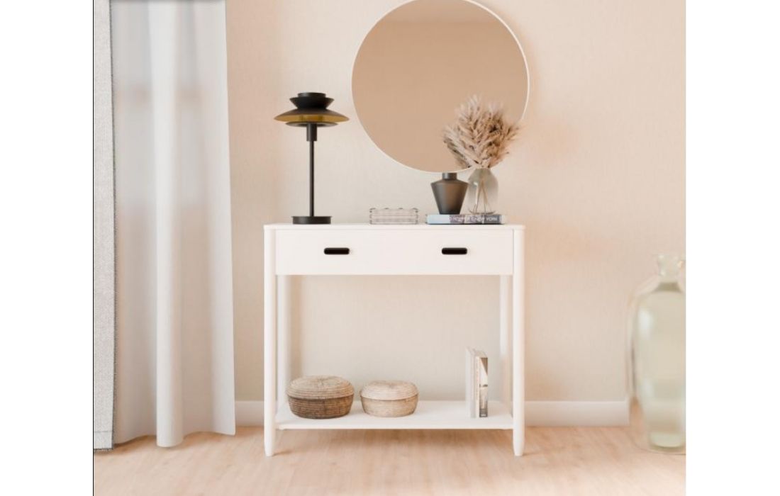 Console for hall with structure in natural and lacquered oak wood with 1 drawer and metal handles.