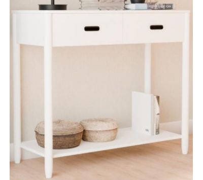 Console for hall with structure in natural and lacquered oak wood with 2 drawers and metal handles.