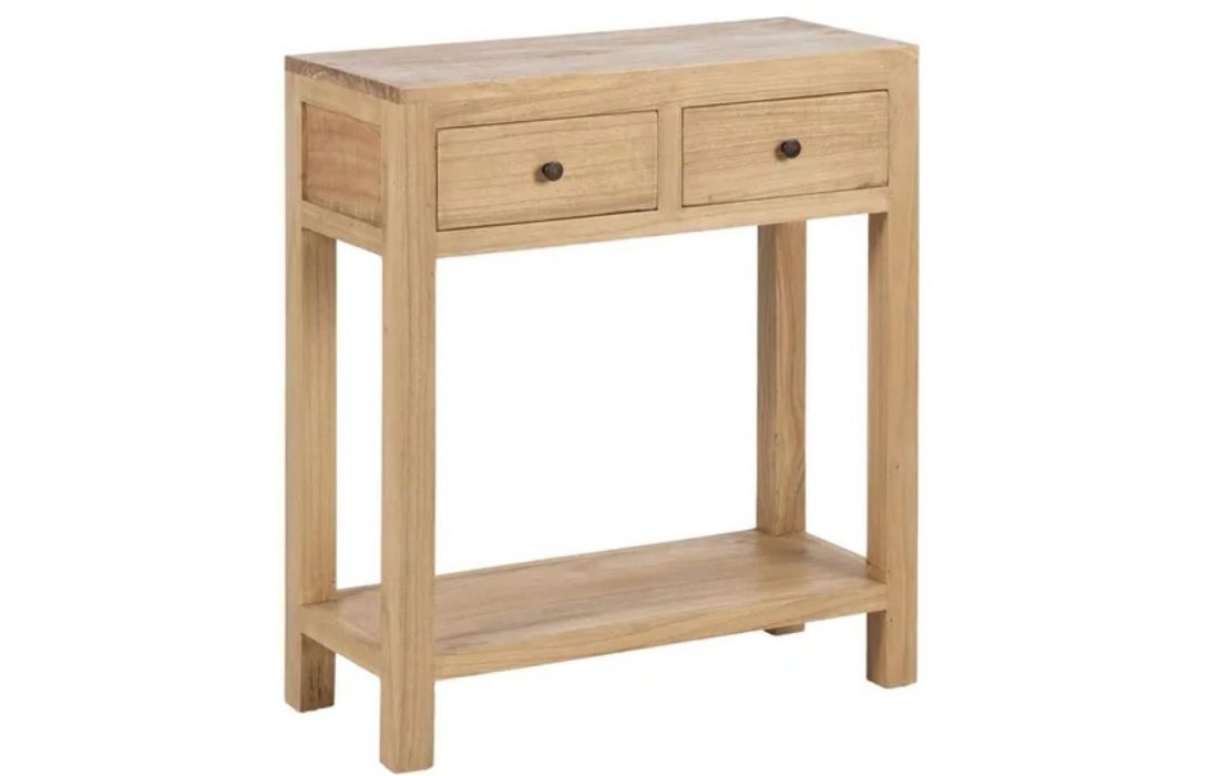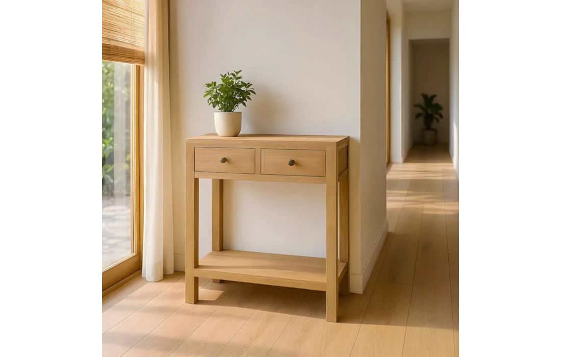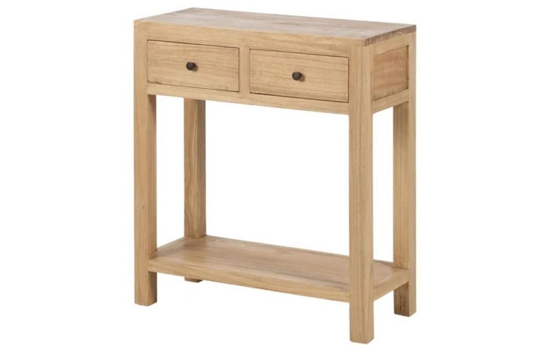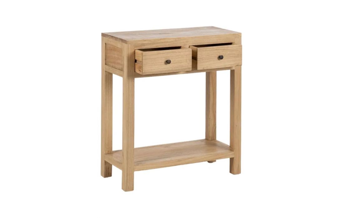 Console table made of mindi wood with minimalist design and 2 drawers storage spaceRecipient :
