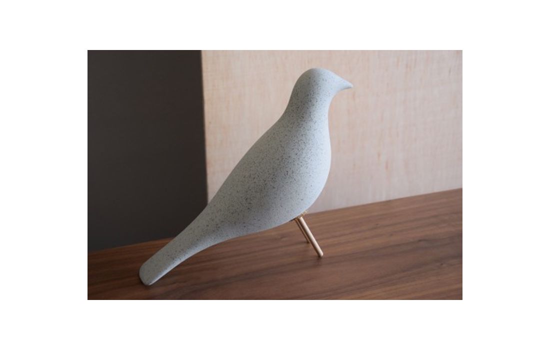 Decorative piece inspired in ceramic bird, gray finish clear matte with a touch rough and wooden legs.Recipient :
