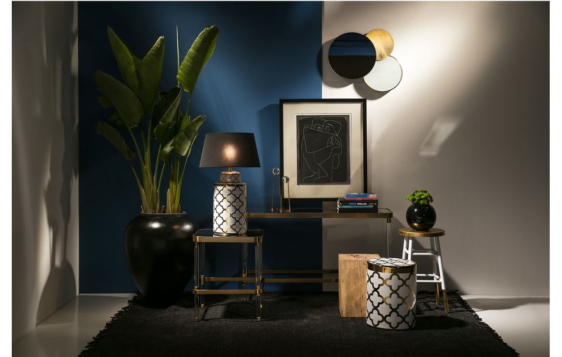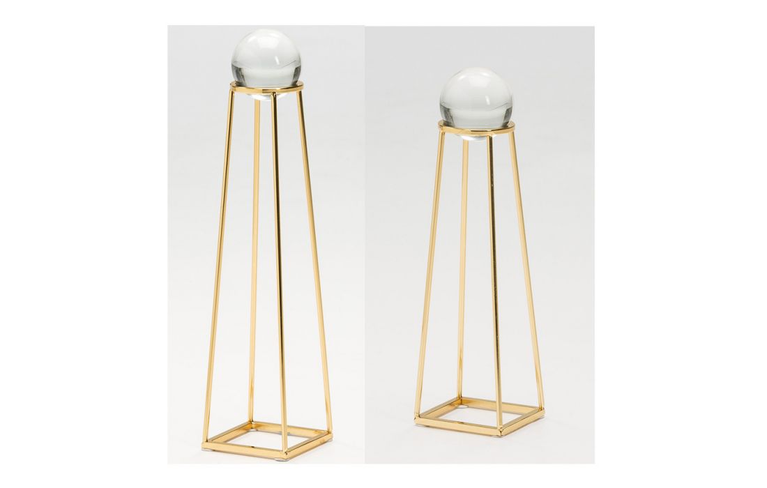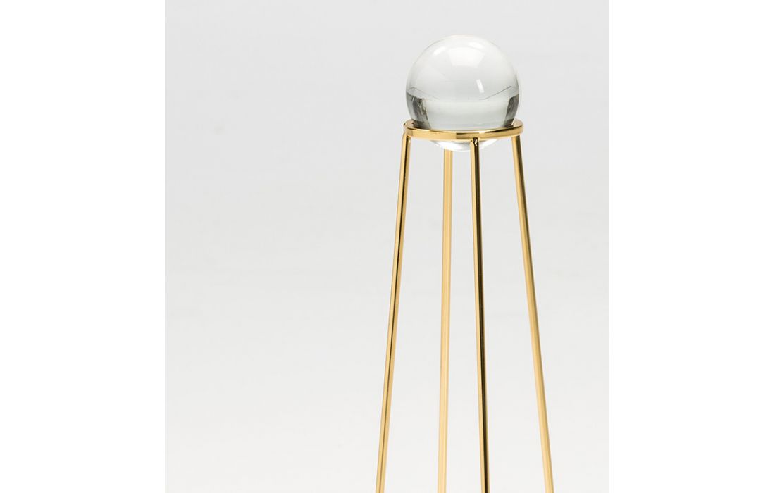 Decorative piece in golden metal and glass ball, available in large and small sizes.