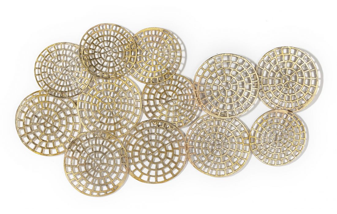 Decorative wall panel in gold metal
