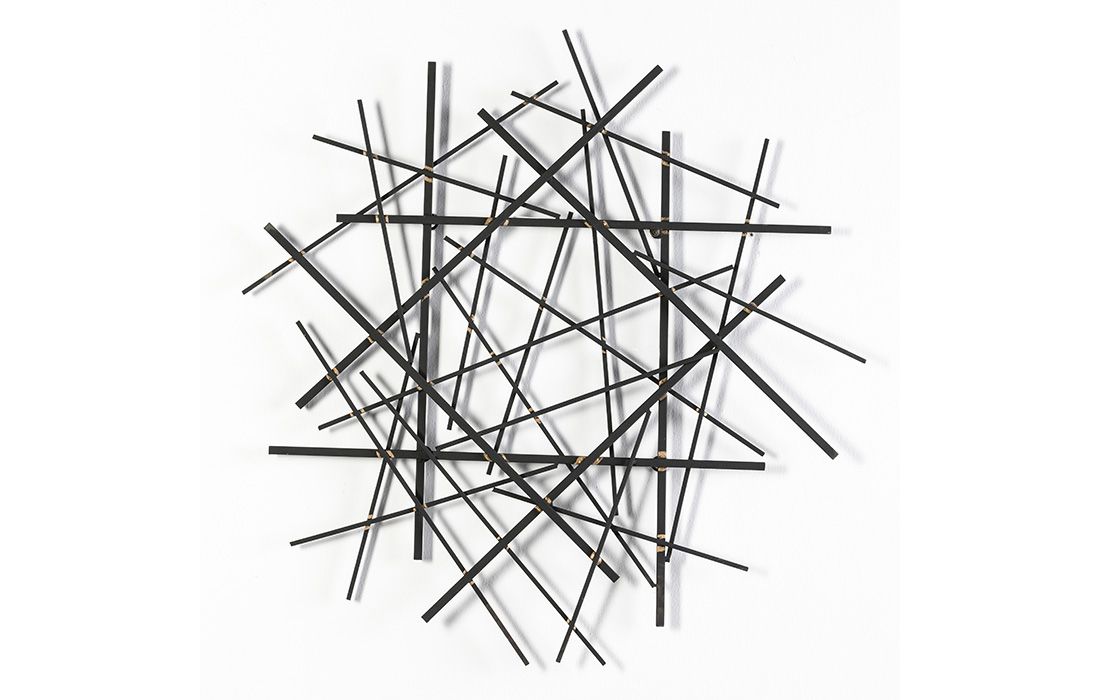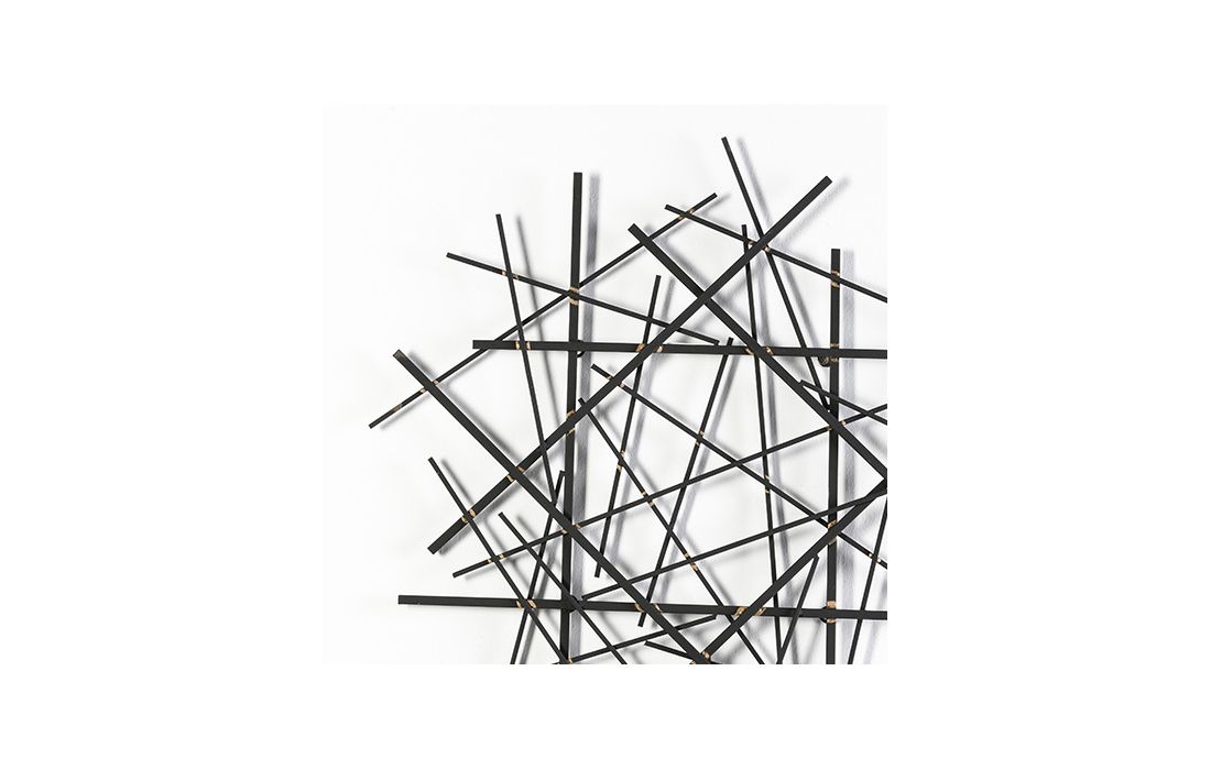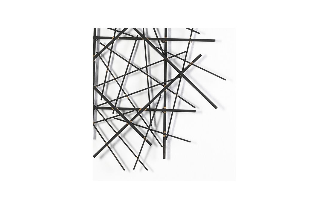 Decorative wall panel in black metal with gold detail