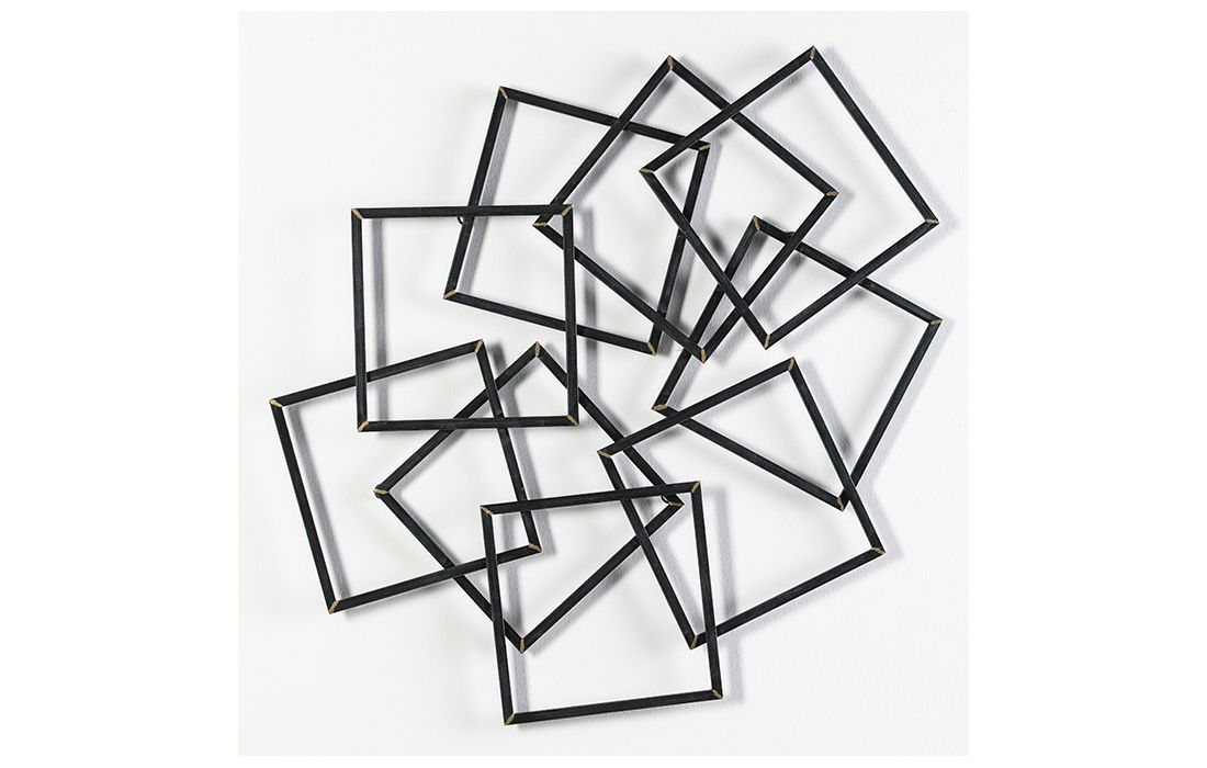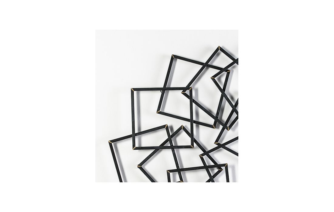 Decorative wall panel in black metal with gold detail