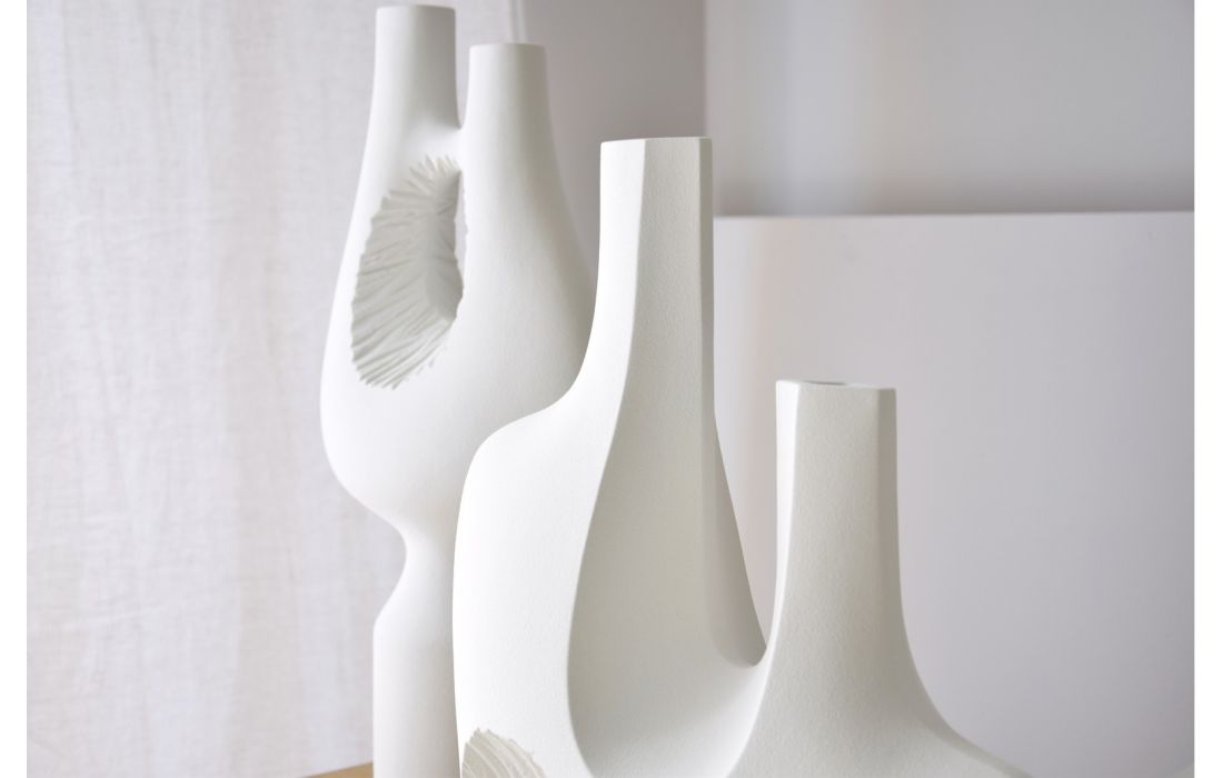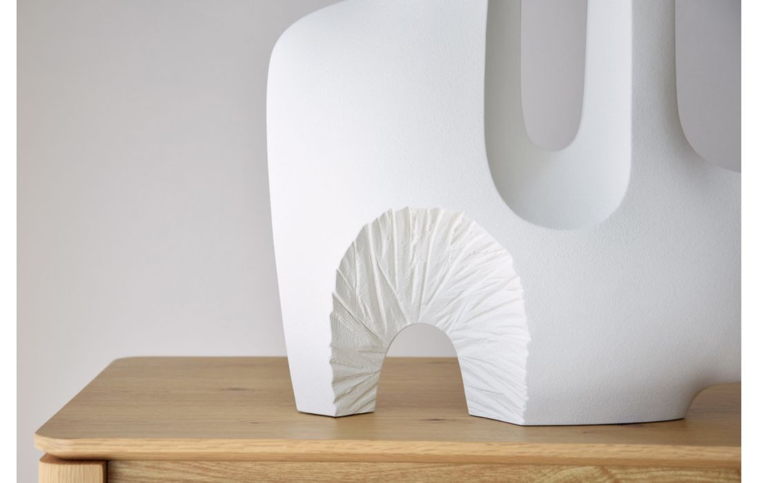 Sculpture made in ceramic with white finish, and texture. Piece cooked at high temperature which makes each one unique.