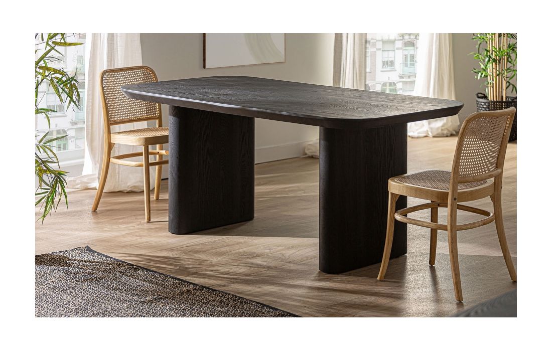 Rectangular dining table in contemporary style made of black openwork woodRecipient :