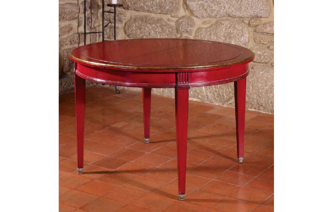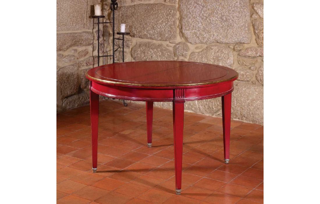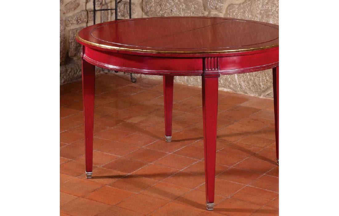 Extensible round table with 1 extension of 50 cm, Provencal design and detail in gold leaf, with the possibility of several finishes.