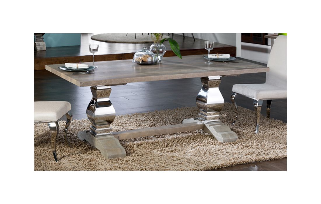 | 591684 | 1 | Dining table in solid ash wood w / polished steel feet | L 240 D 100 H 78 | 2.796,00 € | ||||