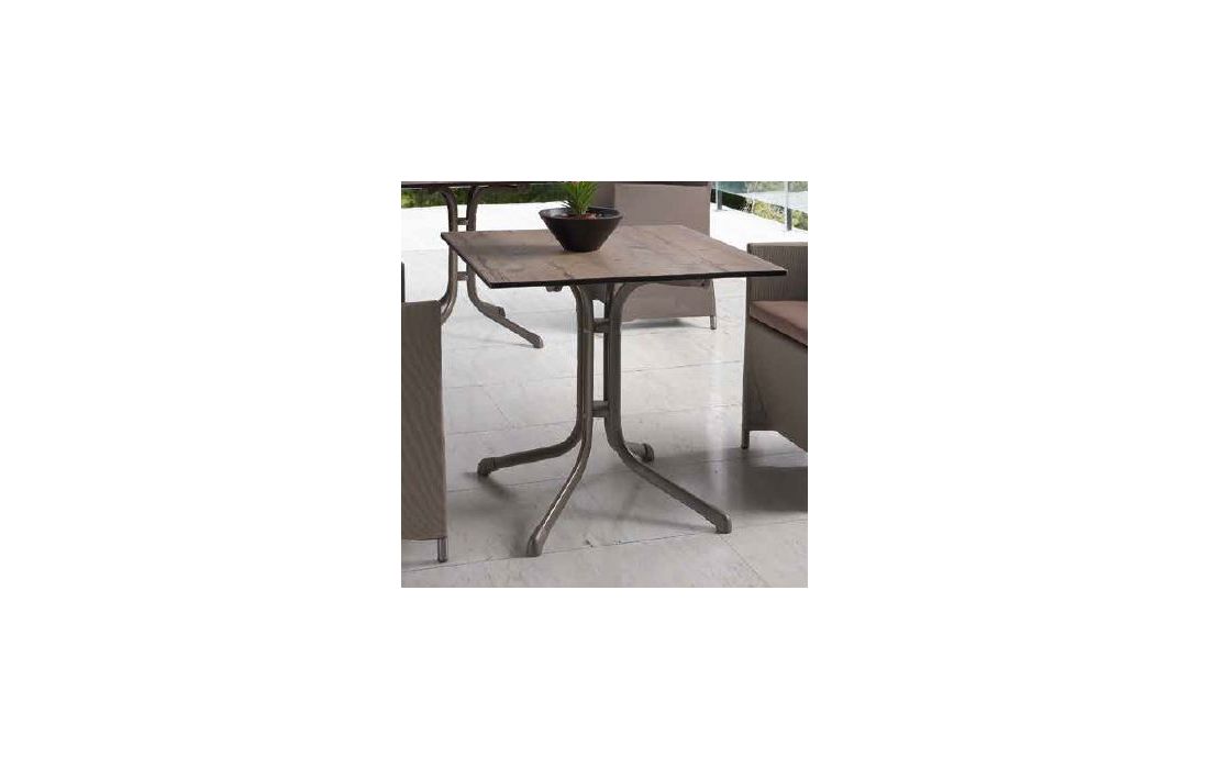 Table in stainless steel marone with top in wood Puroplan, for outdoor use.