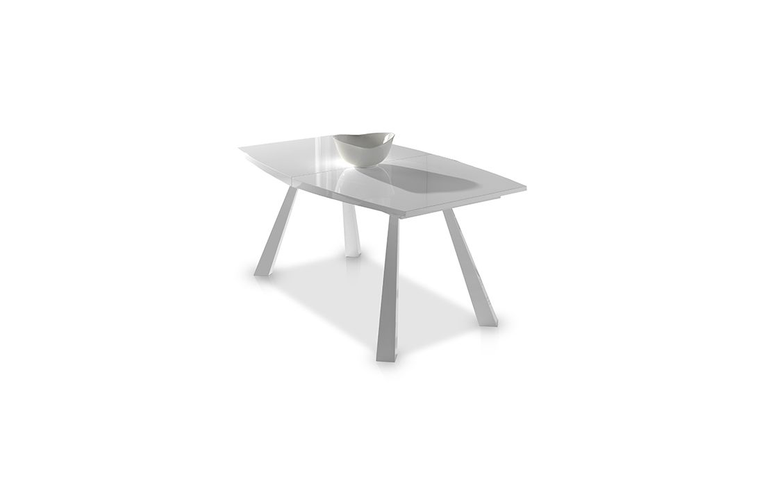 Extendable oval table with top and legs lacquered white high gloss