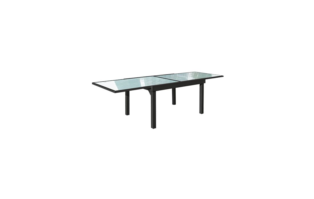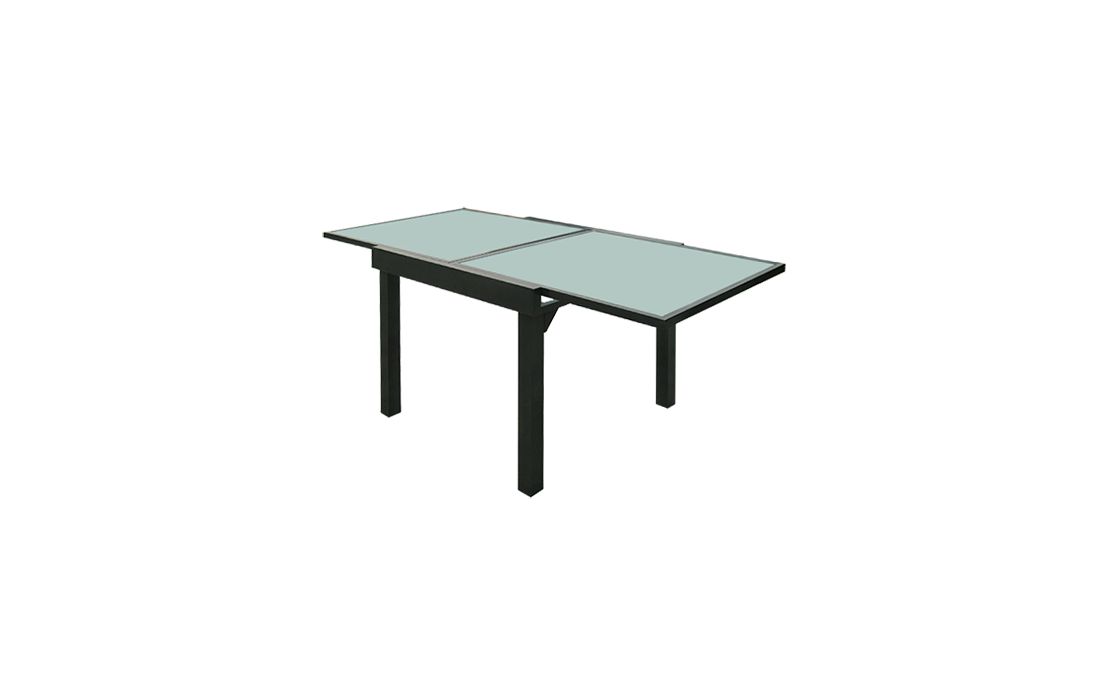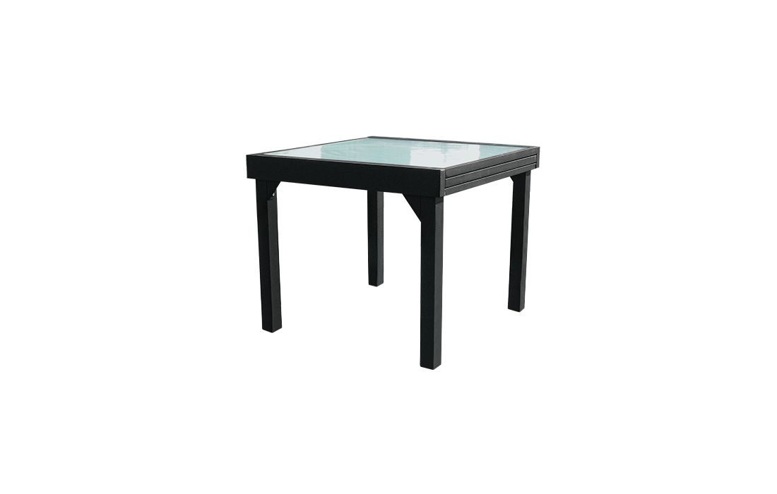 Extensible table with structure aluminum anthracite gray, translucent glass top, square or rectangular.