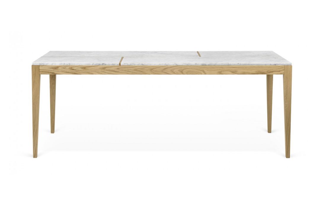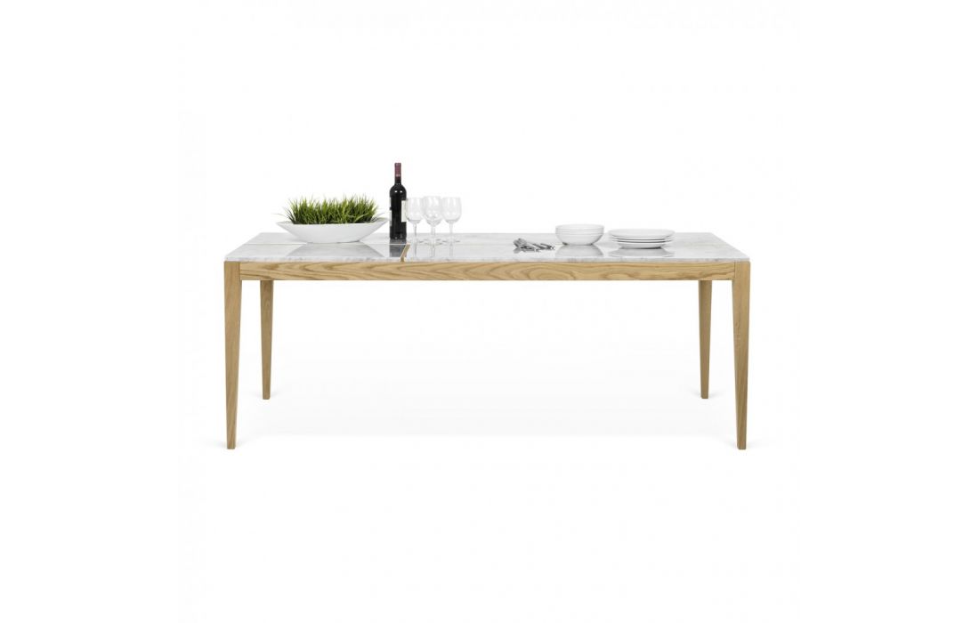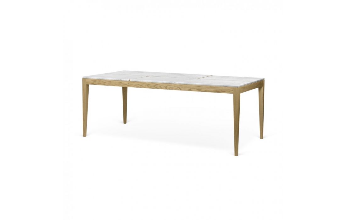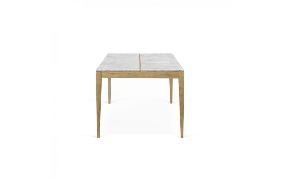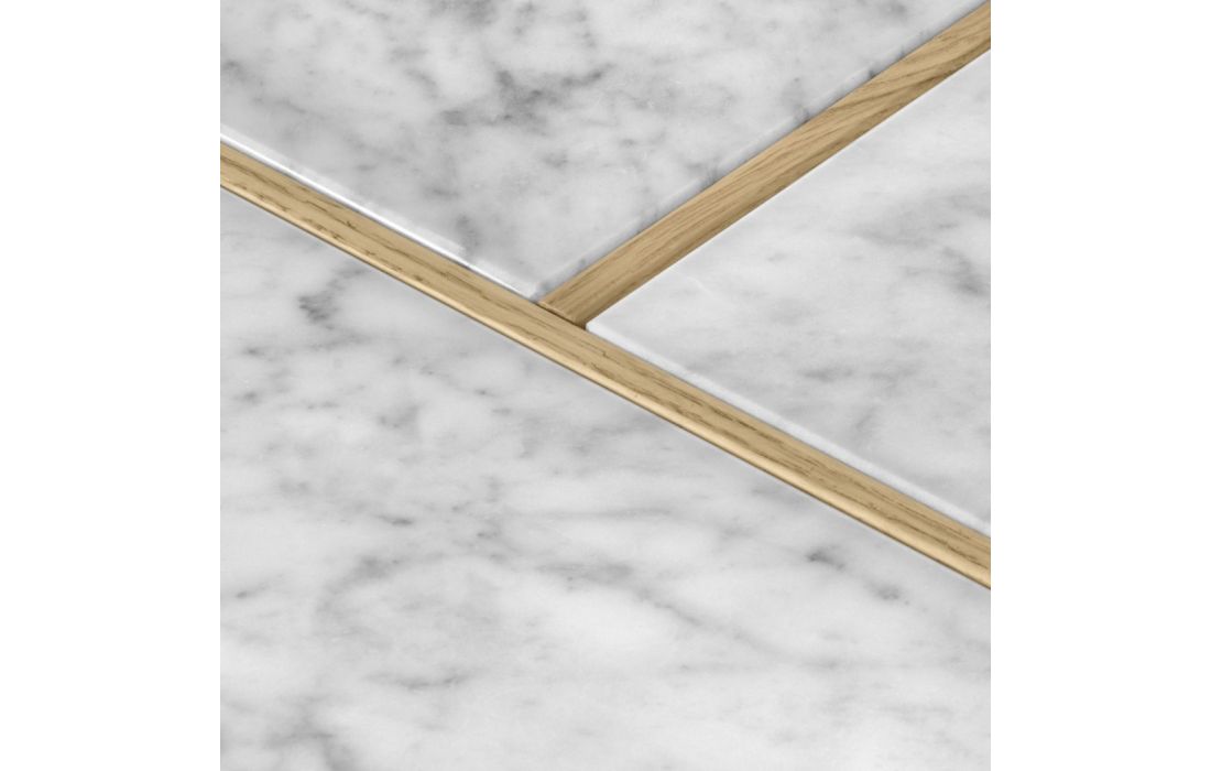Table with solid oak structure with 4 white carrara marble tops, arranged in a mirror symmetry, completely in line with the latest trends.