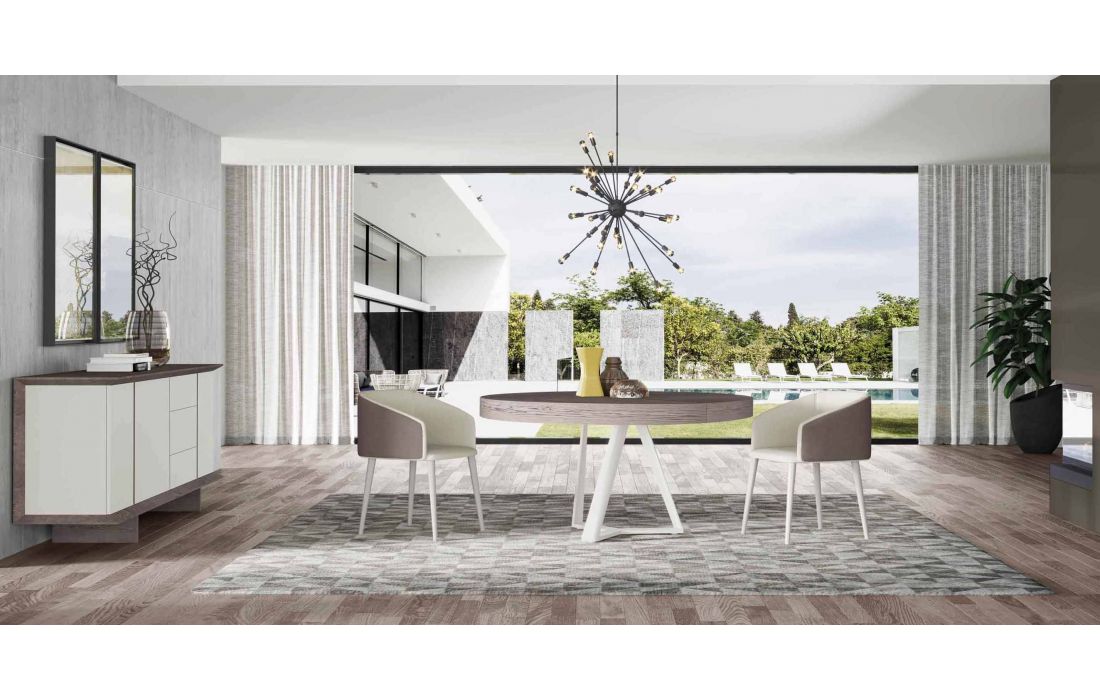 Fixed dining table made of mdf and wood sheet w / feet in metal.Recipient :