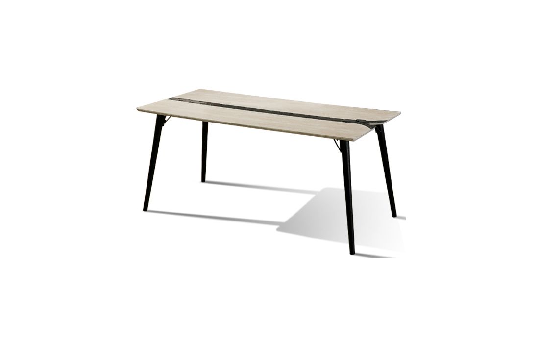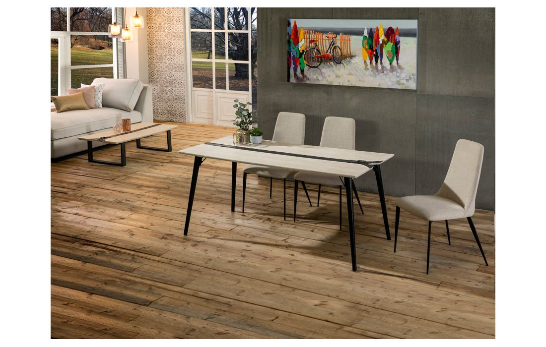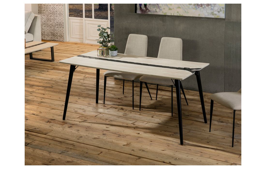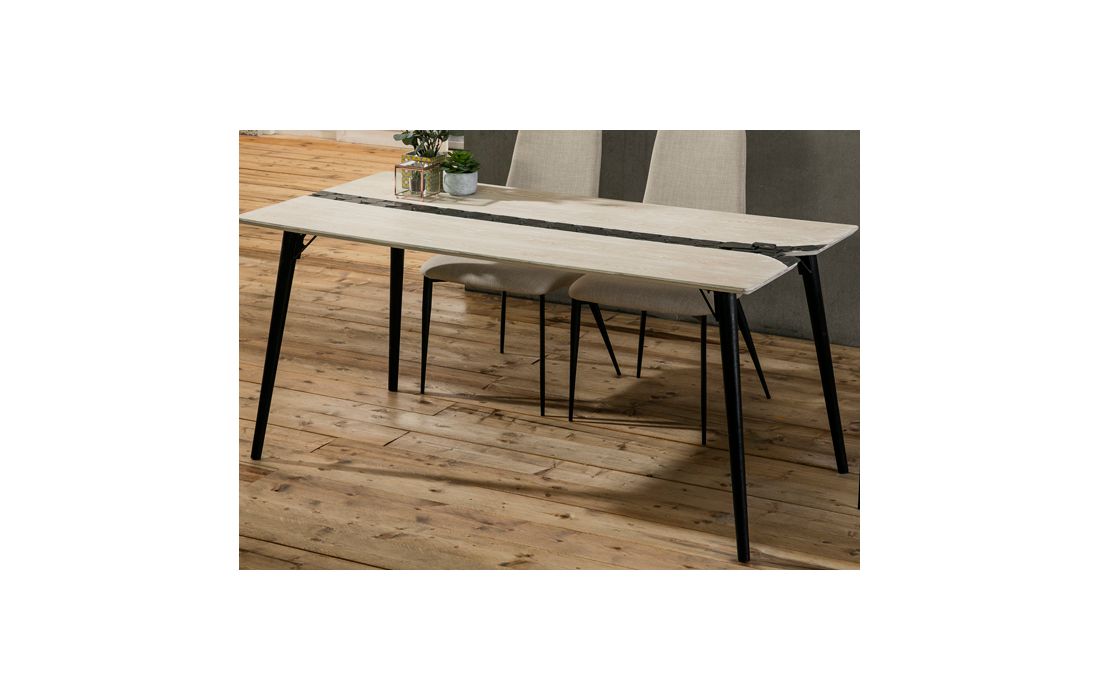 Table industrial aesthetic dining room in wood and MDF veneer in Fresno. Top with natural finish with white patina. Decorative rack of iron and wooden feet, black finish.Recipient :