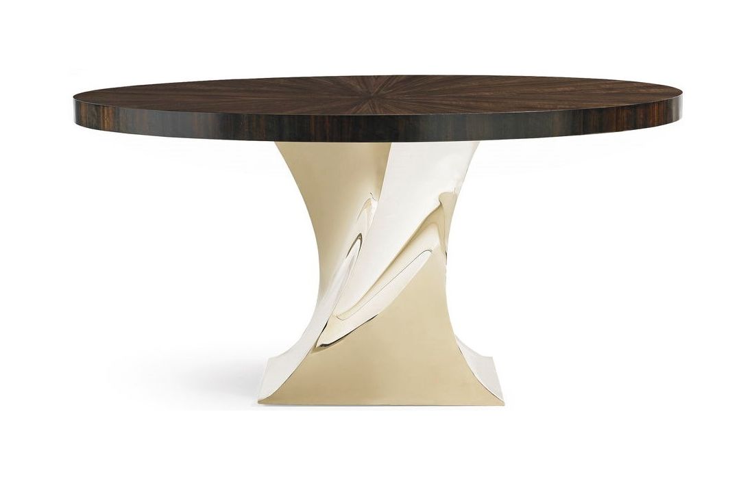 Impossible to ignore this incomparable table. Modern but timeless, its sophisticated torsion base is brought to light in "Gold Bullion" and "Brushed Gold Bullion". Pair it with our round wood top to create an impressive piece with endless possibilities and unrivaled presence