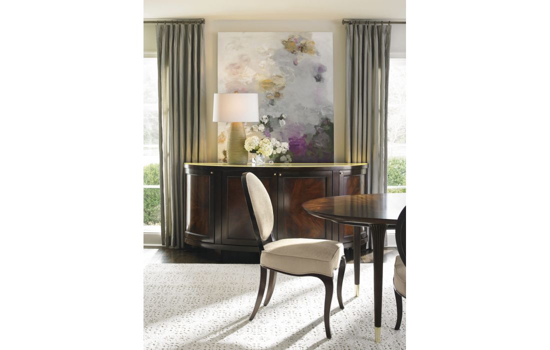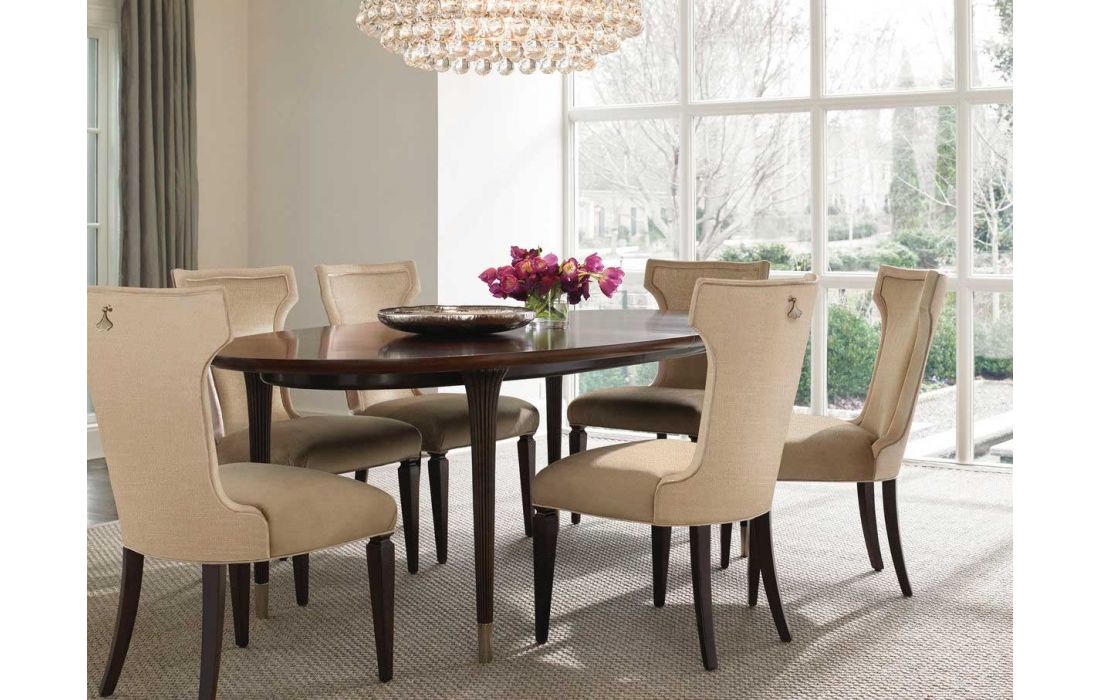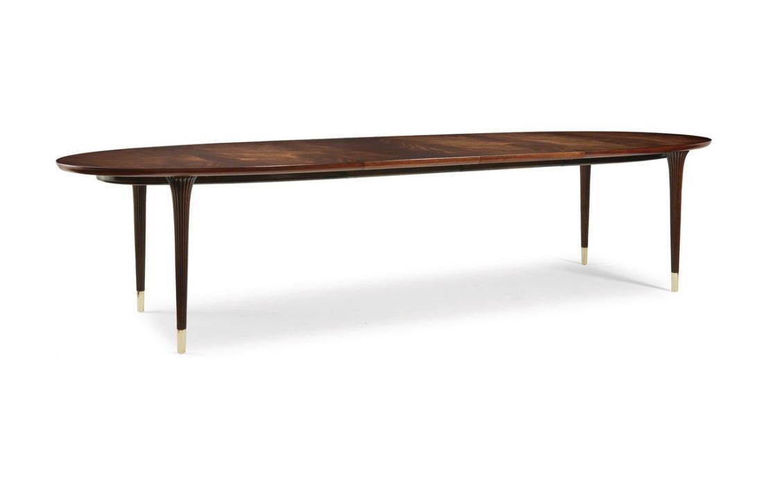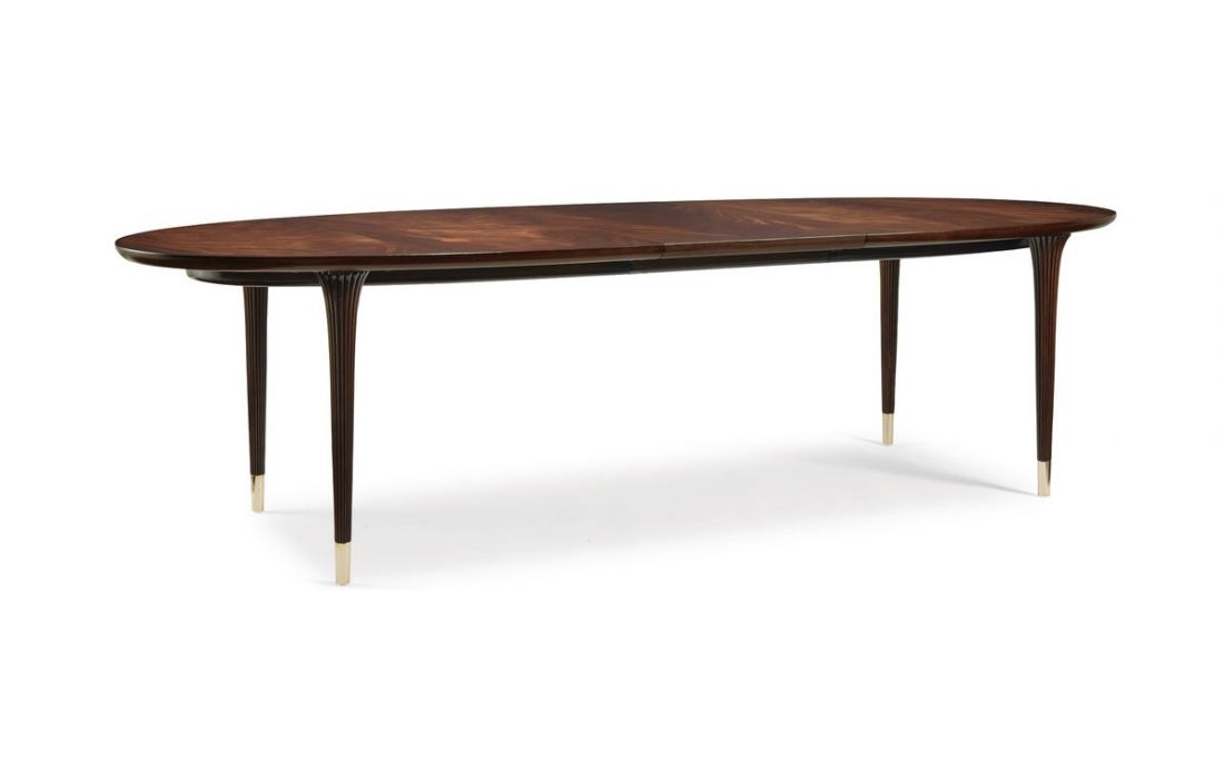 Extendable wooden dining table with gold sheet details