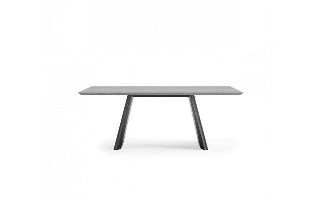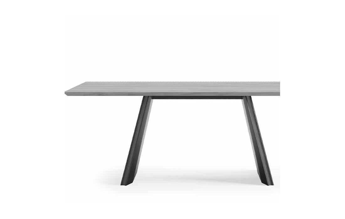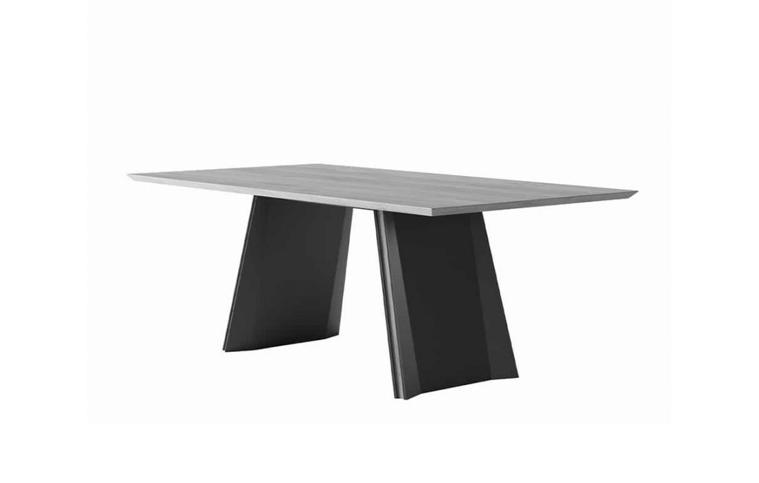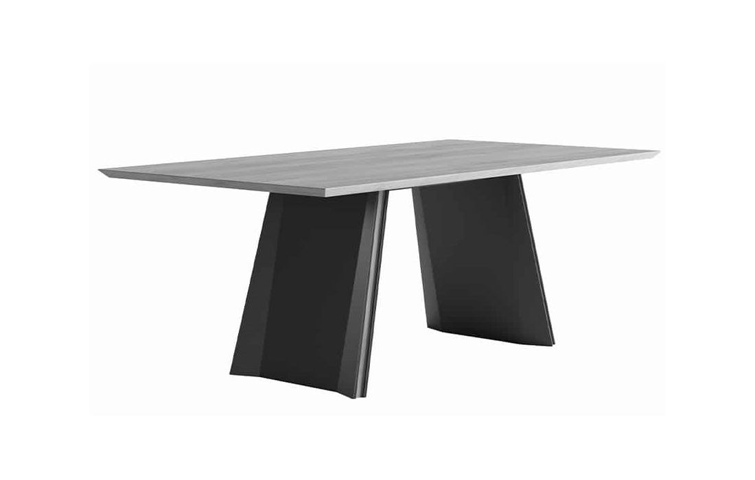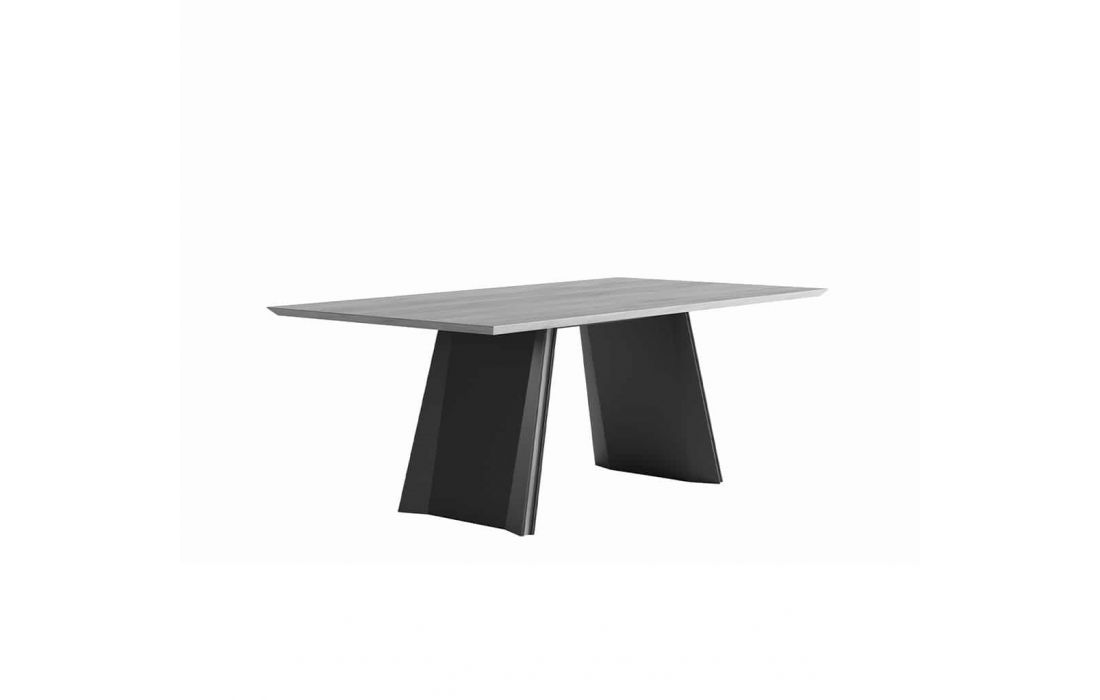 Rectangular dining table with gray sycamore top, lacquered foot and sycamore detail. Veneer foot option.