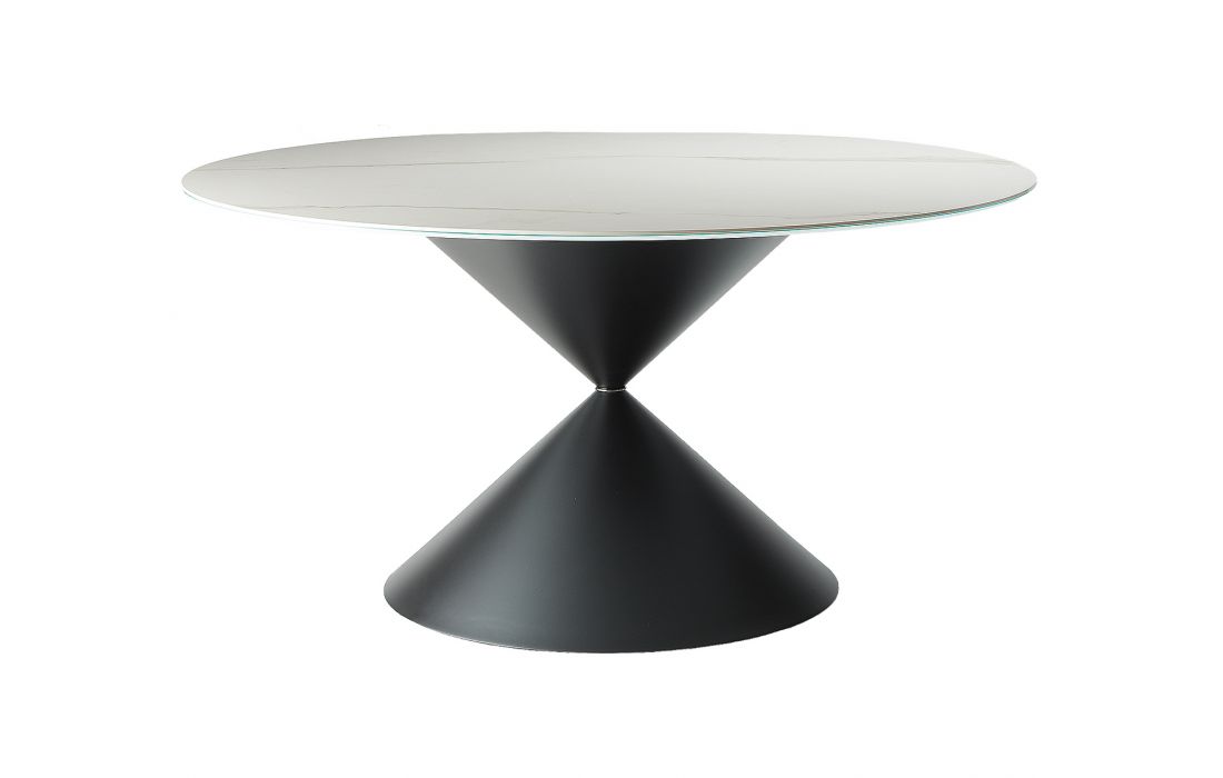 Fixed round table with wooden base and ceramic top, available in 3 colors and base available in five finishes, design Paolo Vernier.