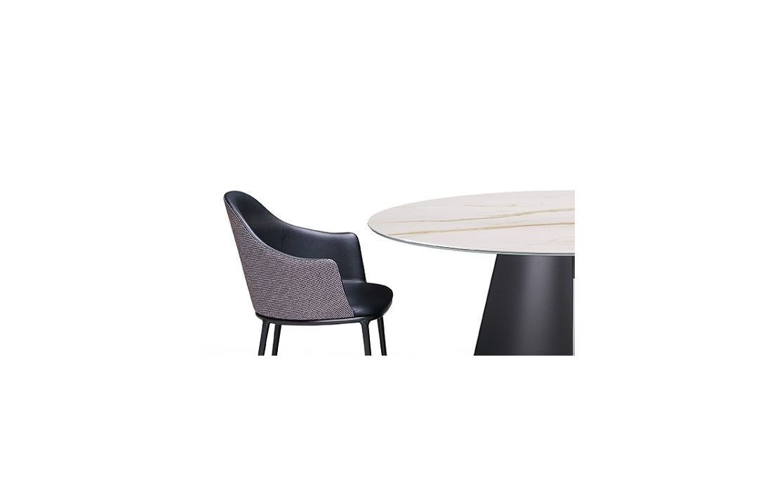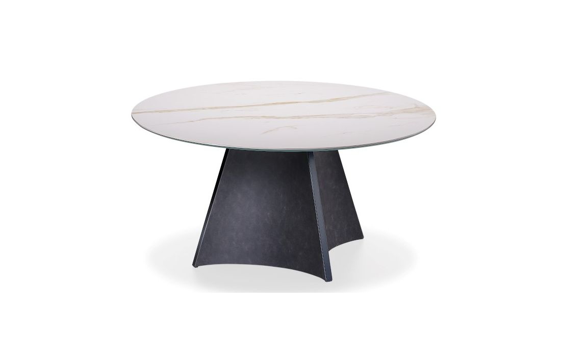 Round table with ceramic top and metal base, available in different structure colors and finishes.Recipient :