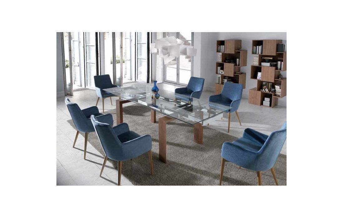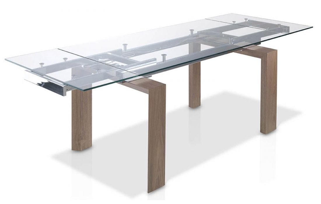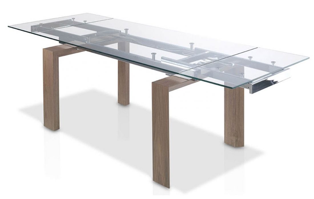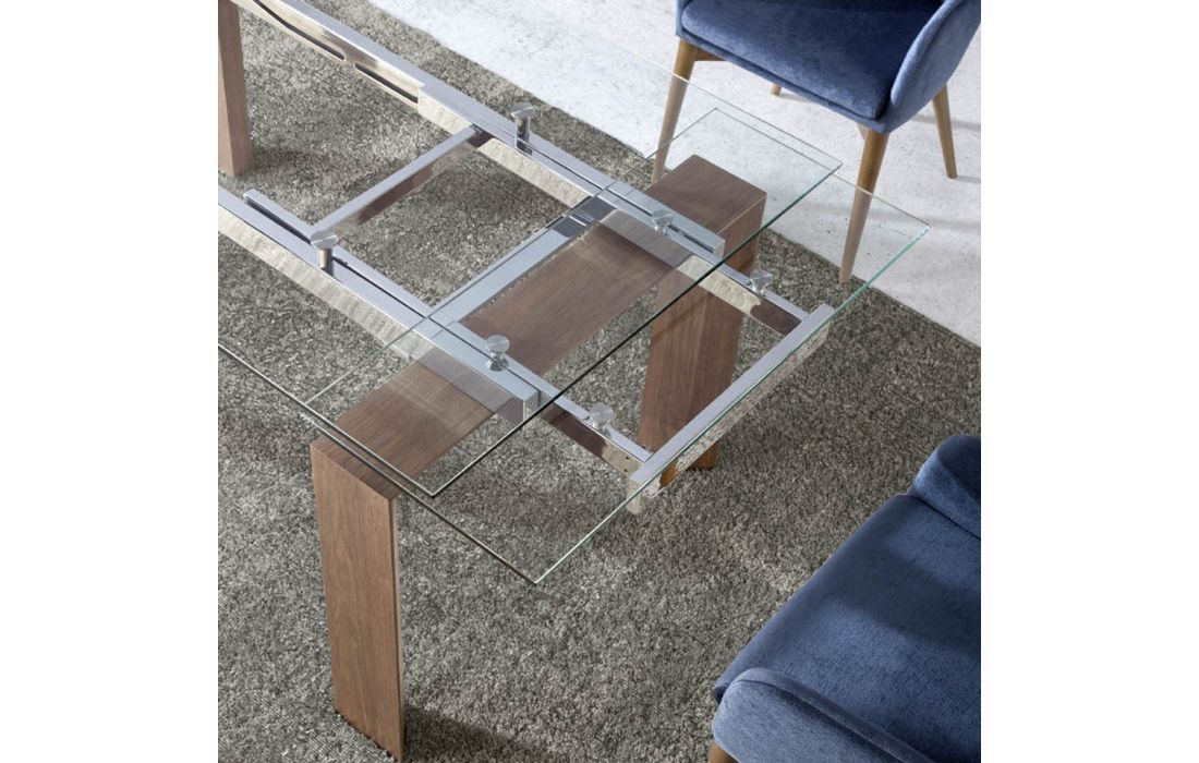 Extendable dining table with tempered glass top and walnut veneer baseRecipient :