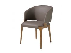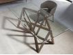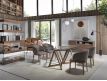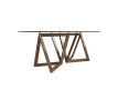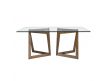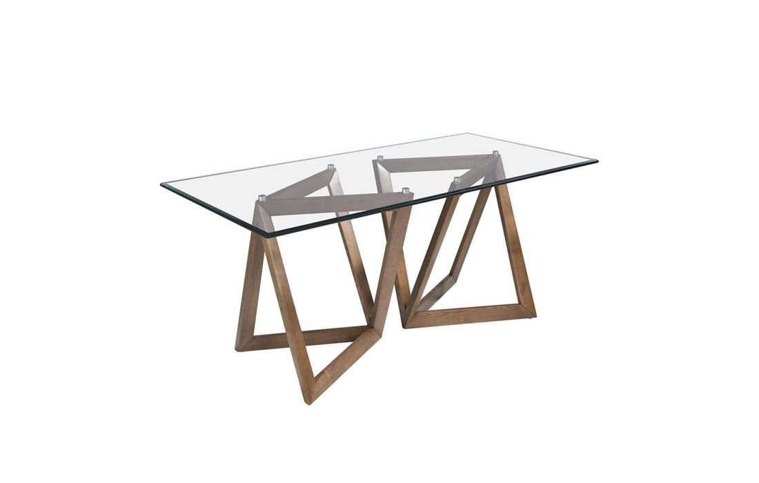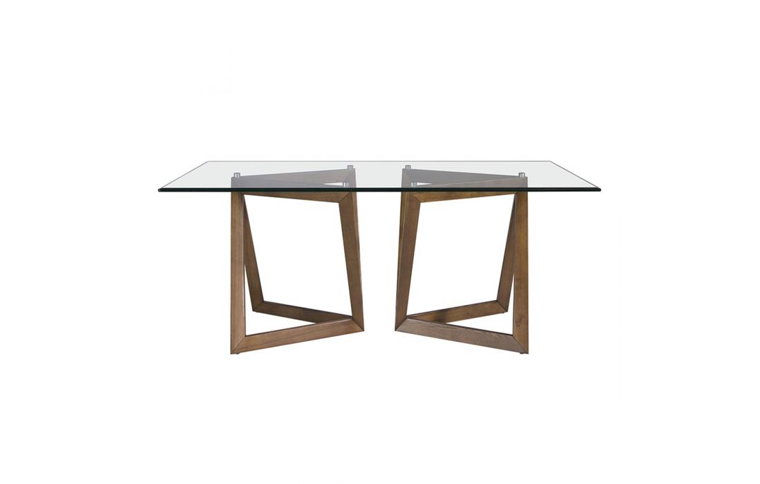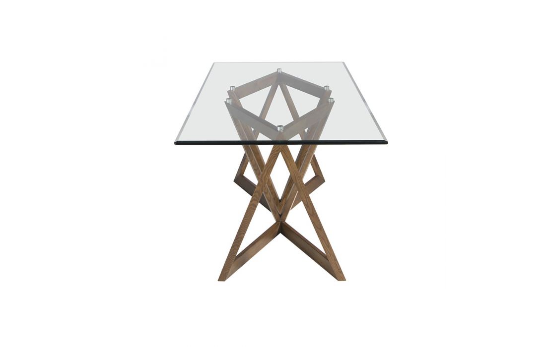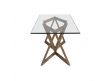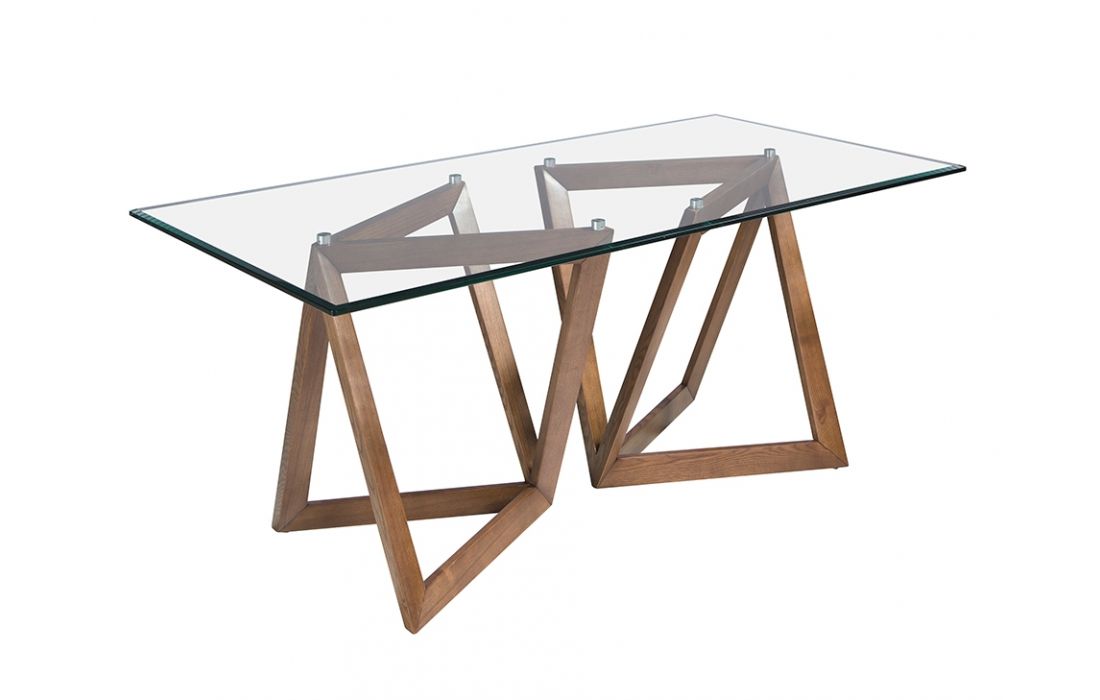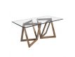 Dining table with fixed rectangular top in tempered glass and walnut-colored wooden legsRecipient :