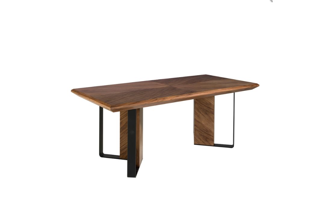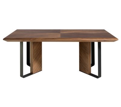 Rectangular dining table with fixed top in natural walnut veneered wood and steel leg structureRecipient :