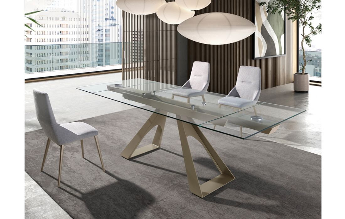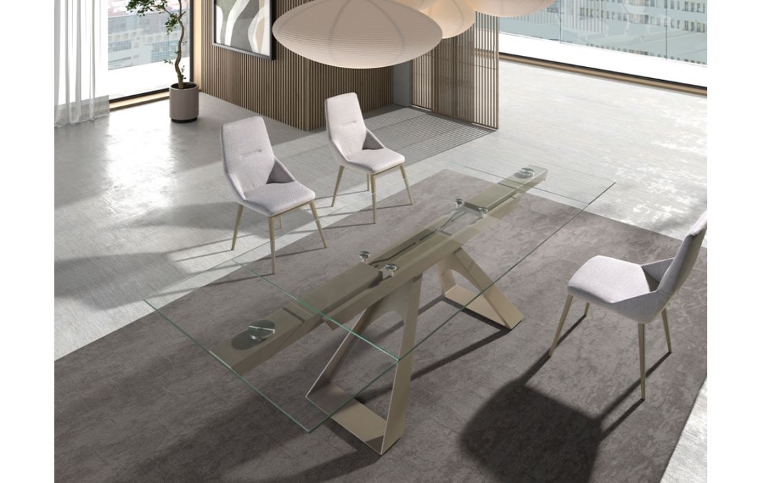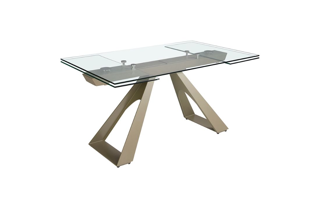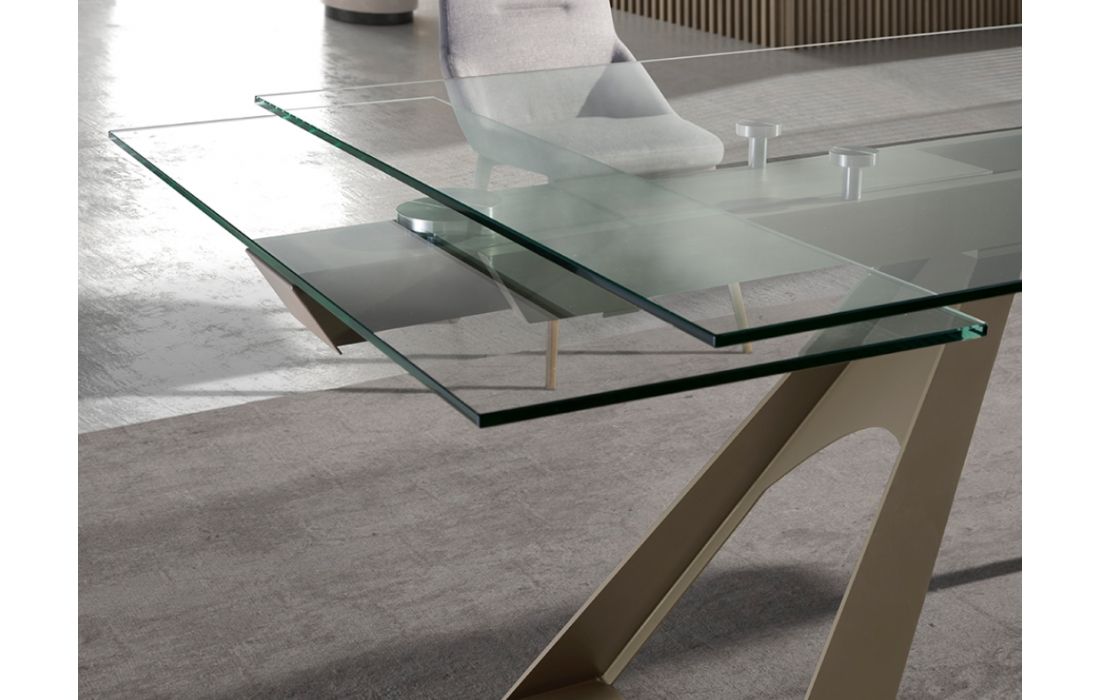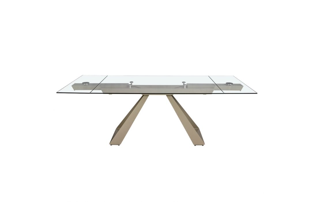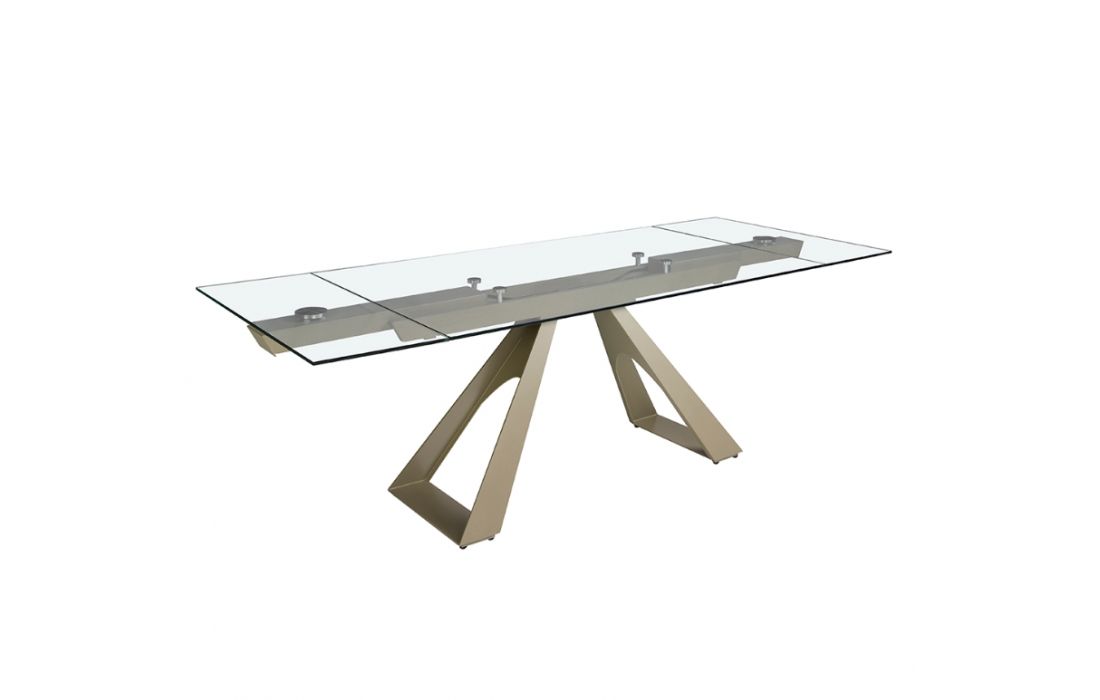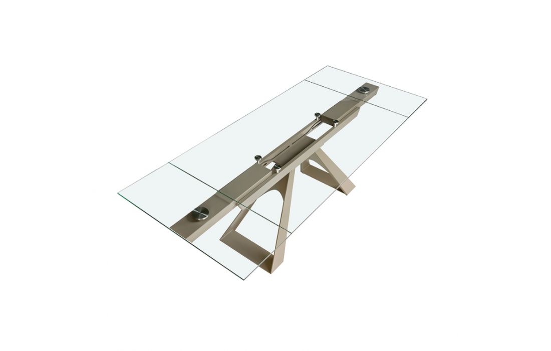 Rectangular extendable dining table with tempered glass top and stainless steel legsRecipient :
