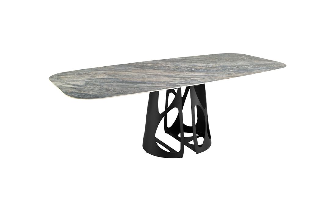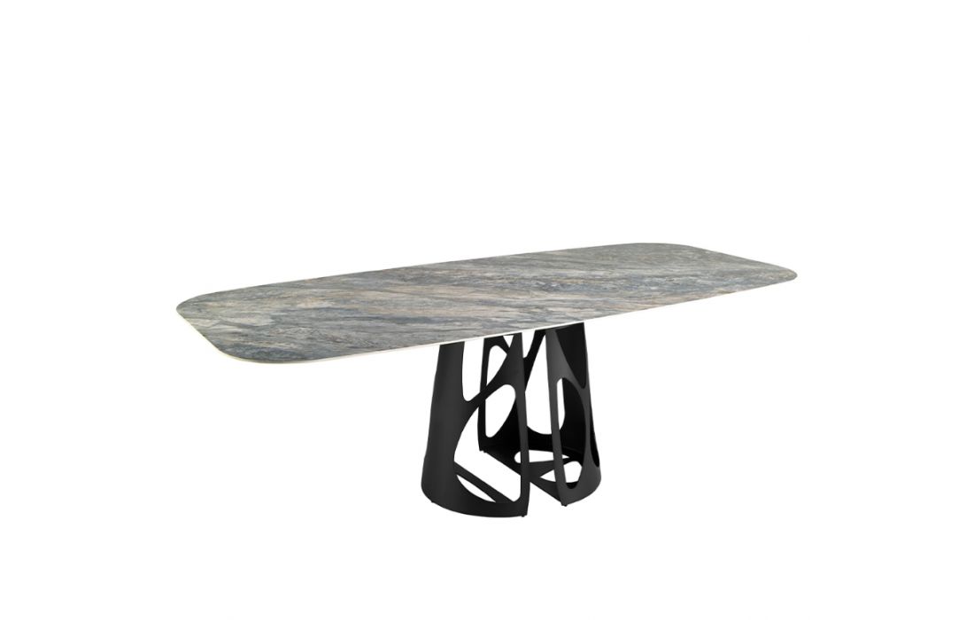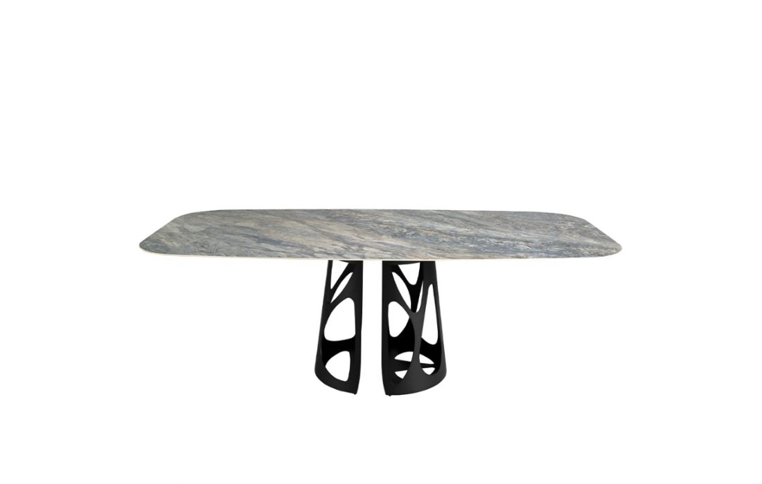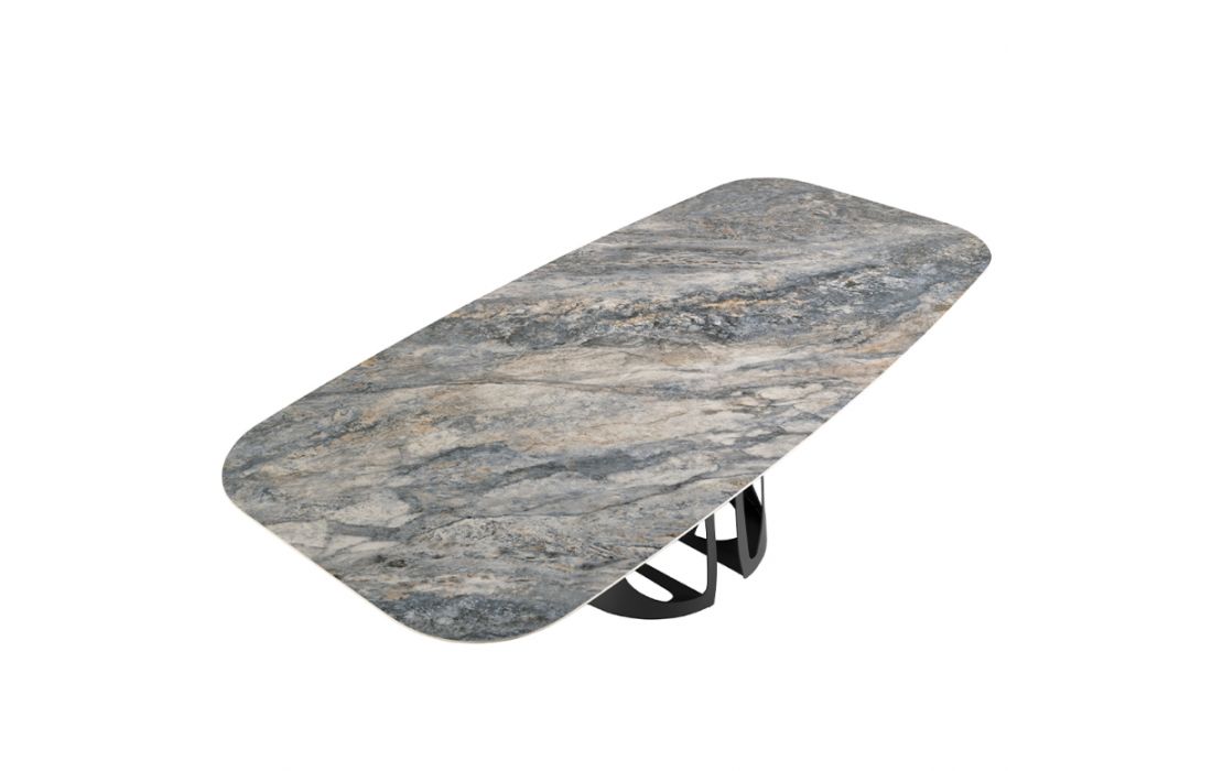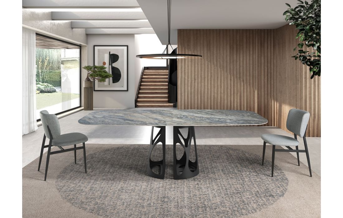 Oval dining table with fixed marble top with glossy finish and stainless steel legsDimensions in cm