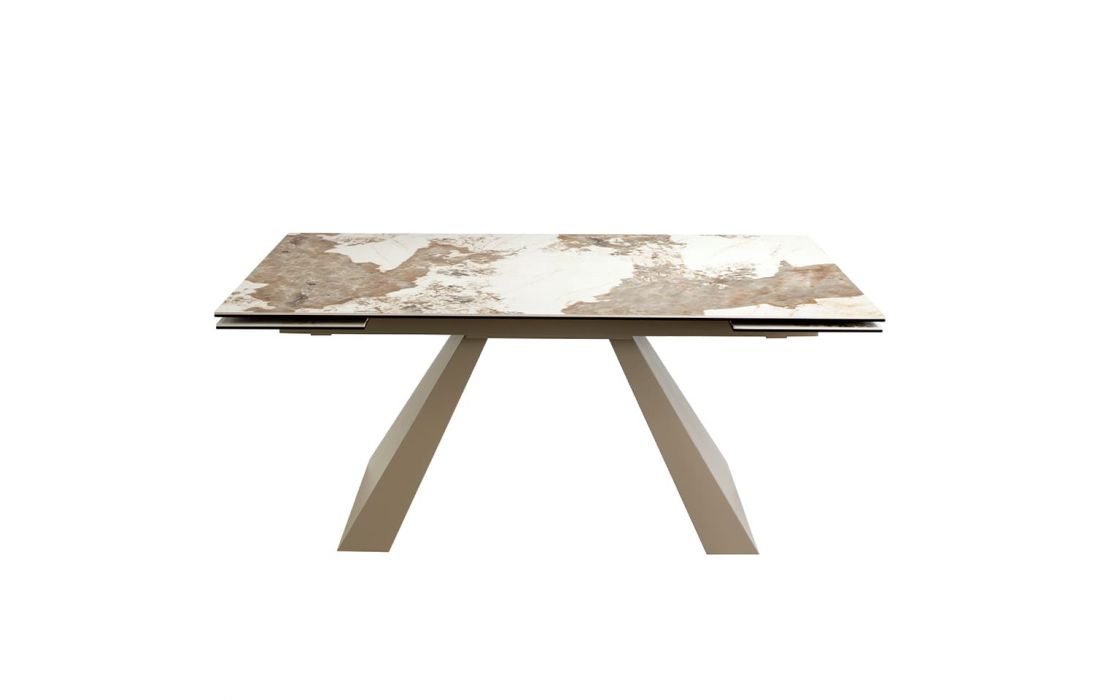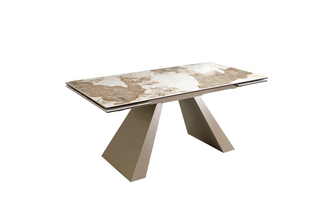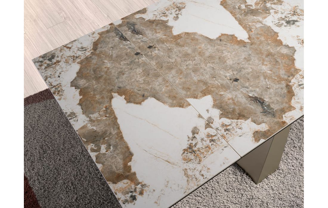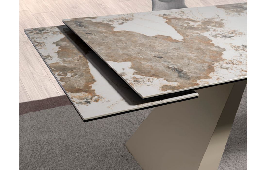 Rectangular extendable dining table with glossy marble top and stainless steel legsRecipient :