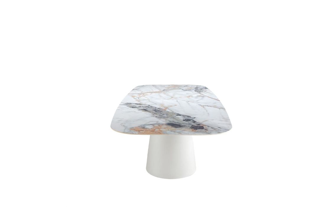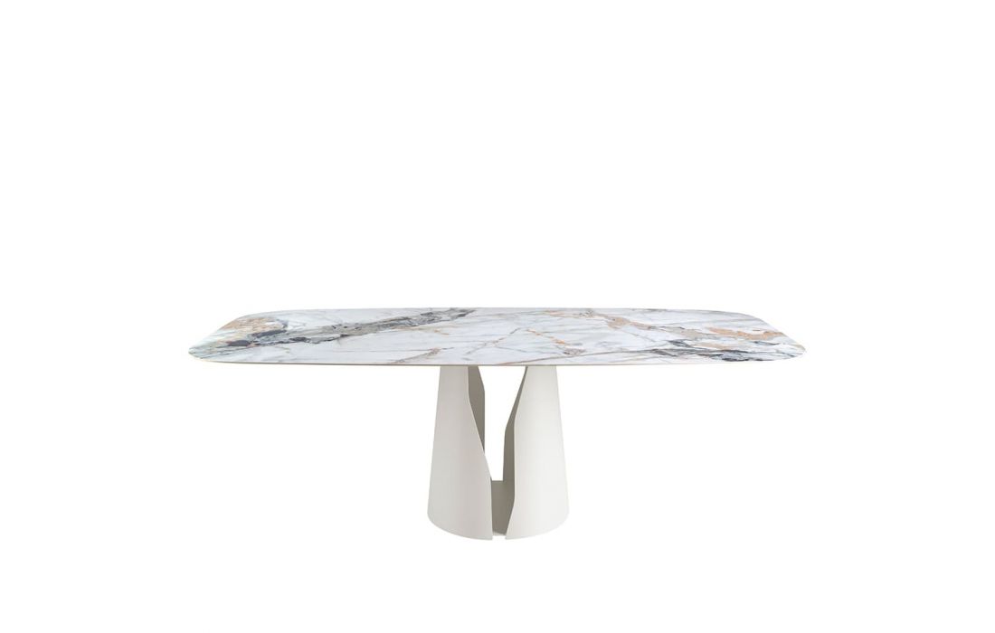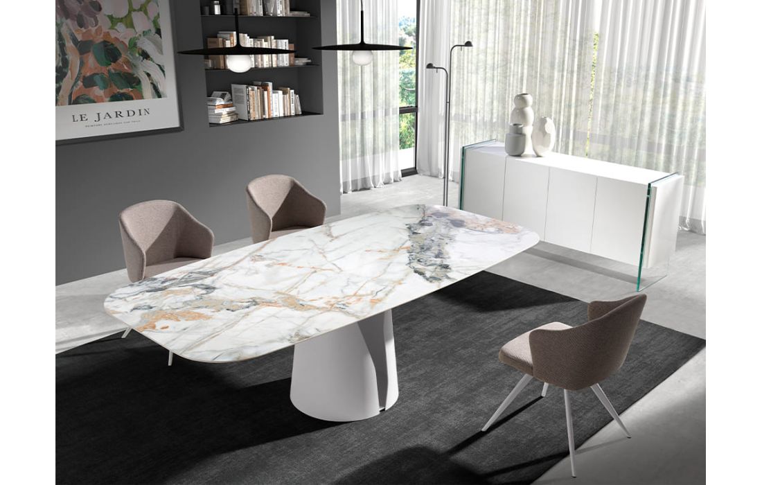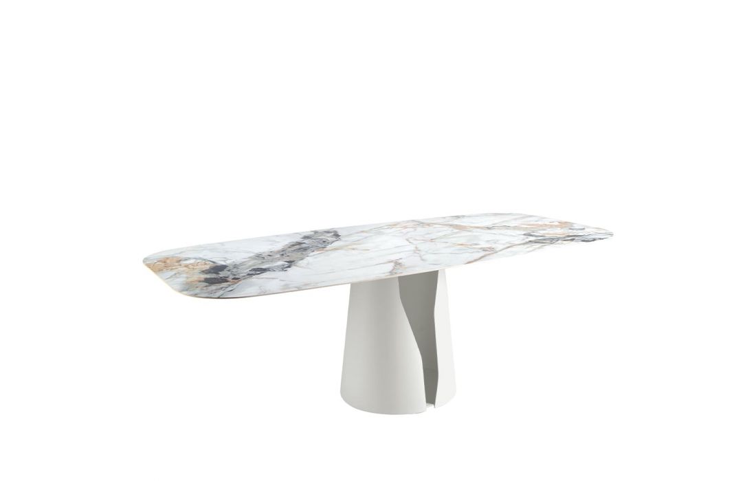 Oval dining table with fixed marble top with glossy finish and steel legsRecipient :