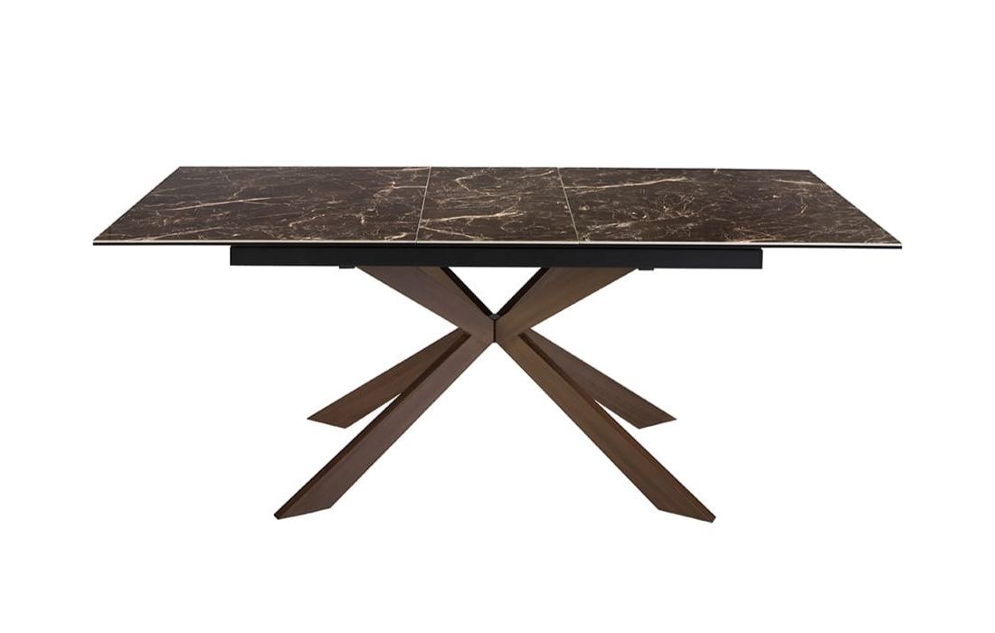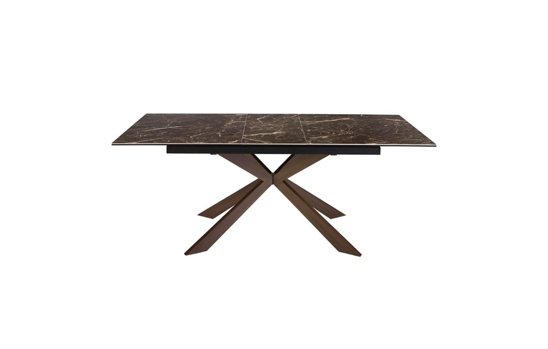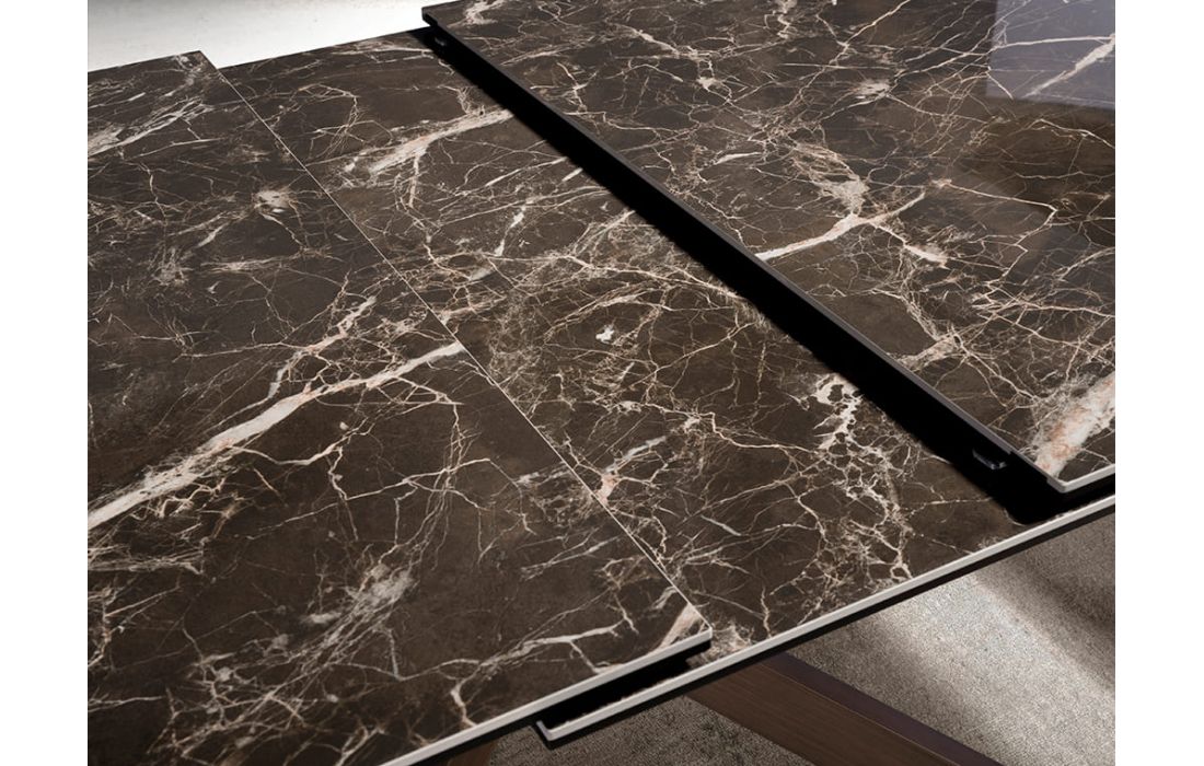 Rectangular extendable dining table with glossy marble top and stainless steel legsRecipient :