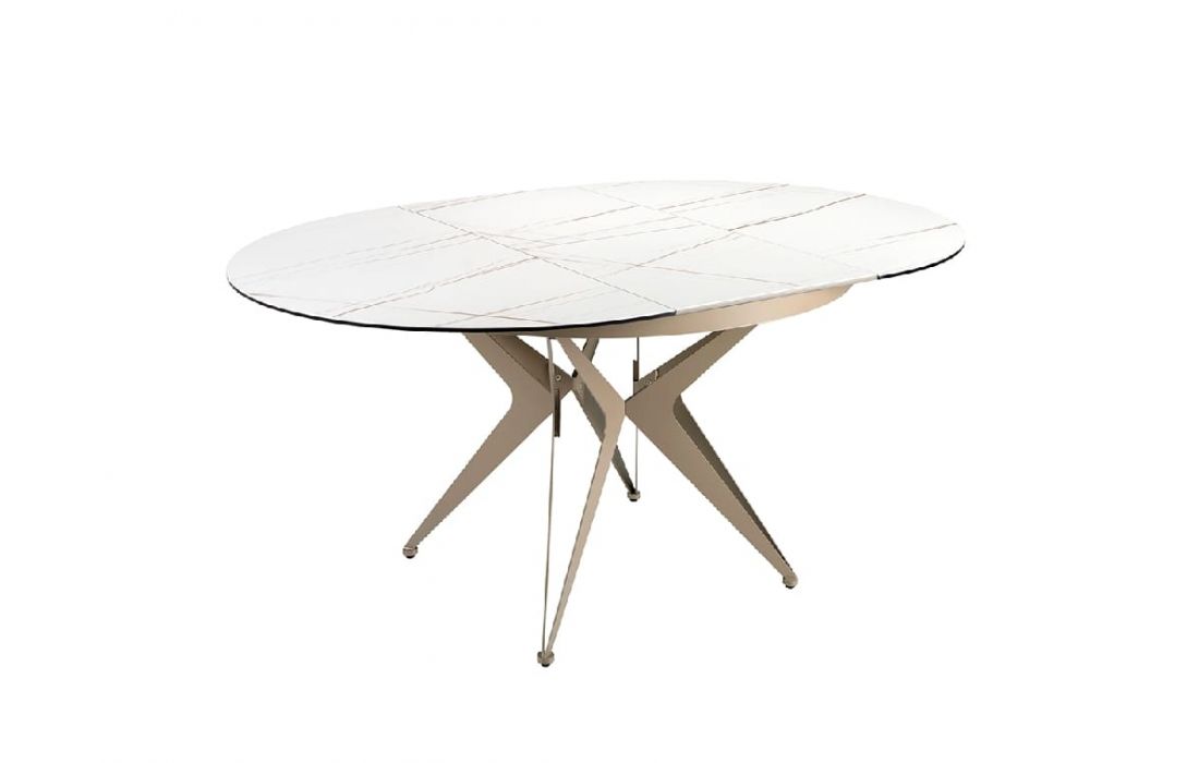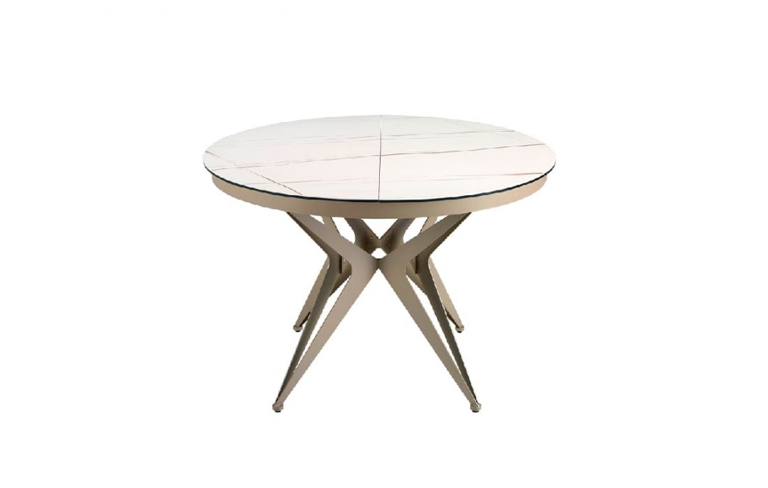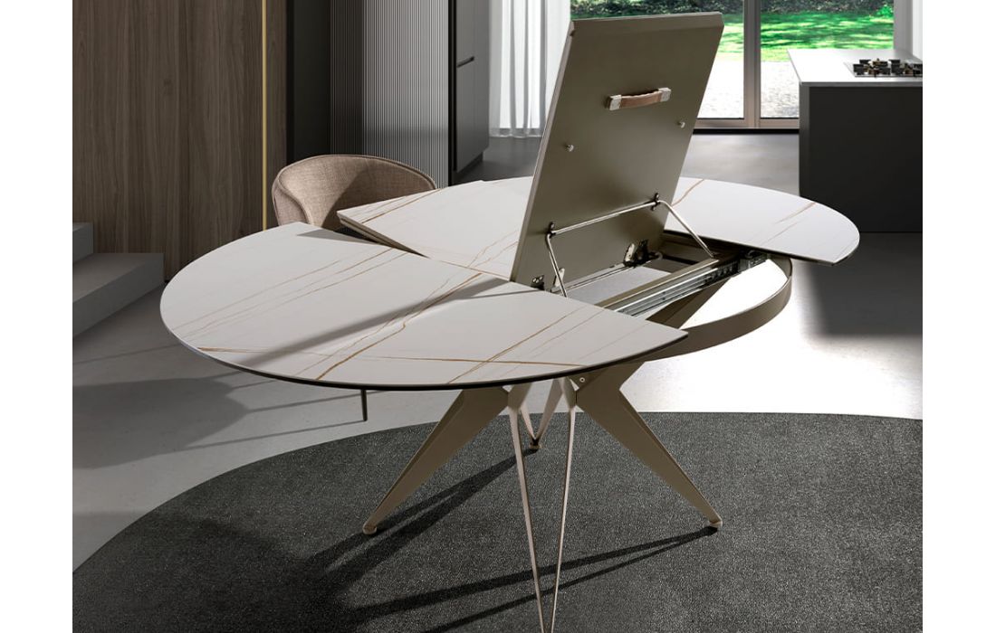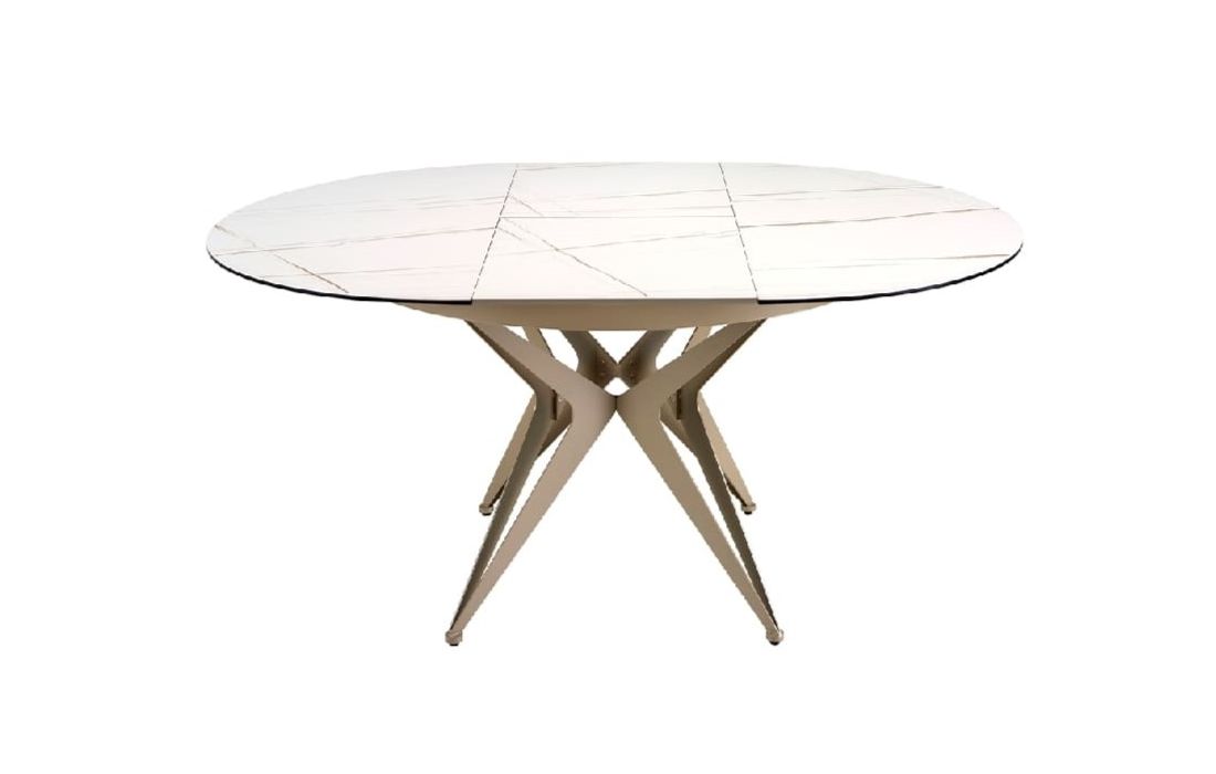 Round extendable dining table with matte marble top and stainless steel legsRecipient :