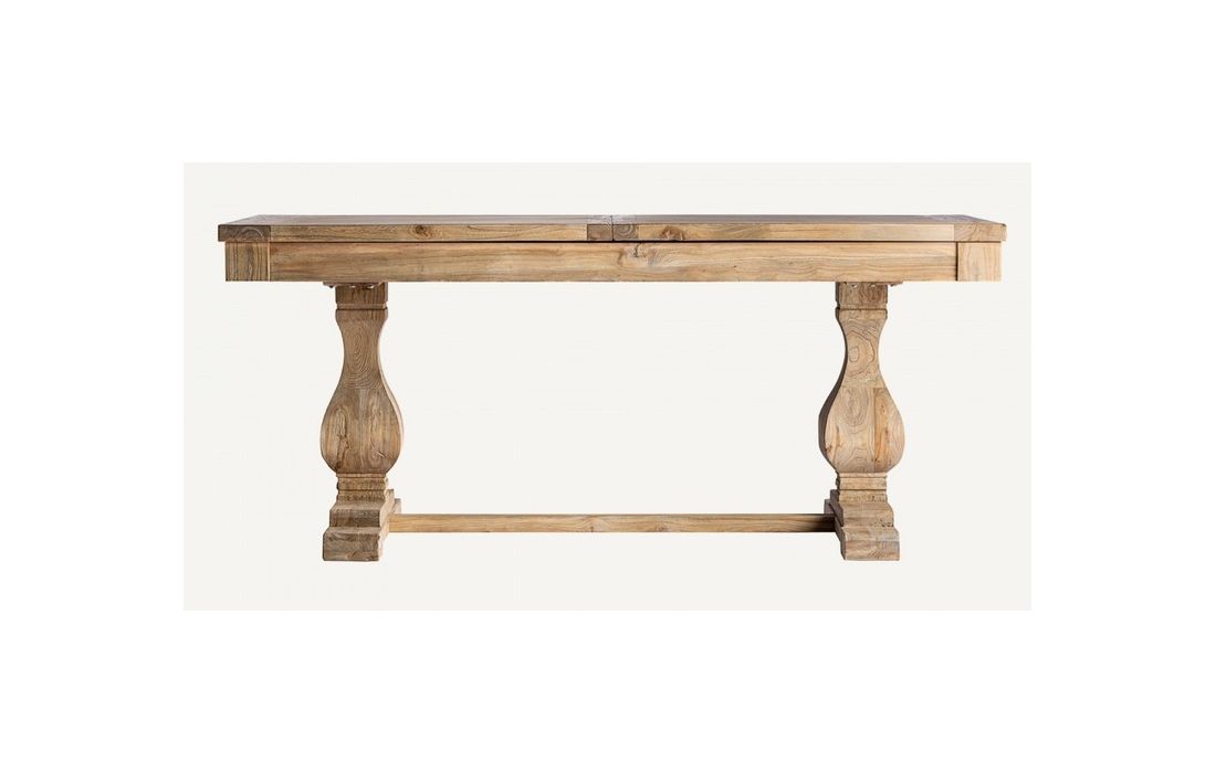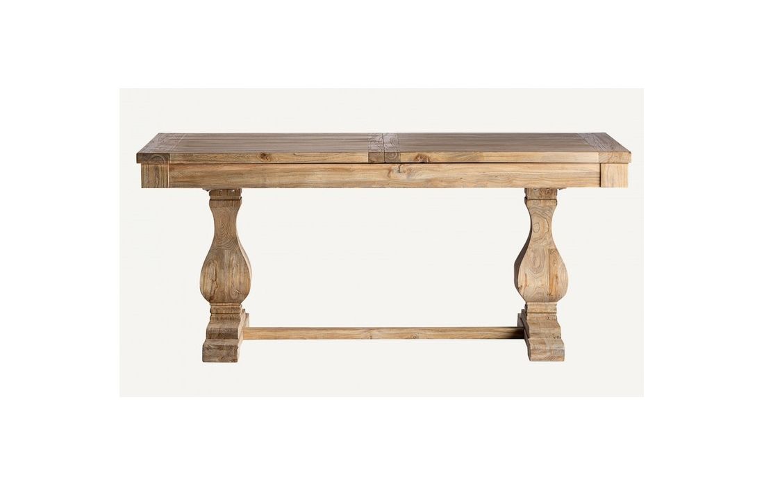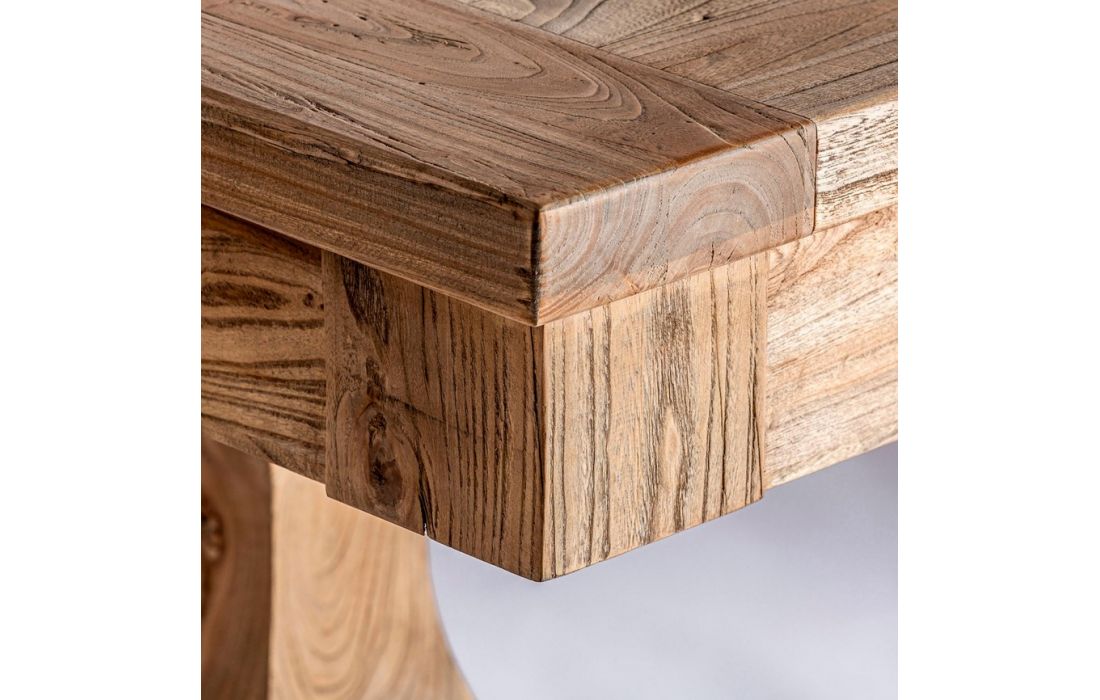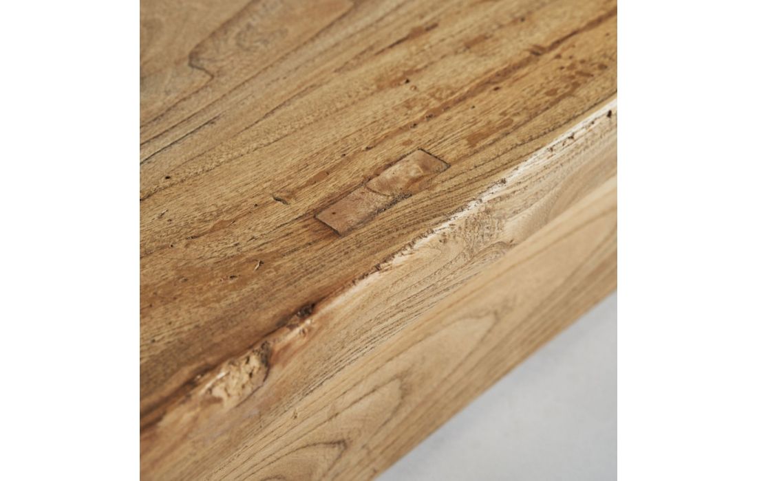 Extendable dining table made of recycled elm wood in brown color