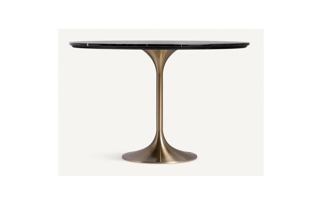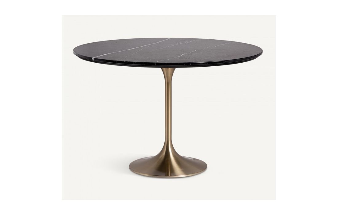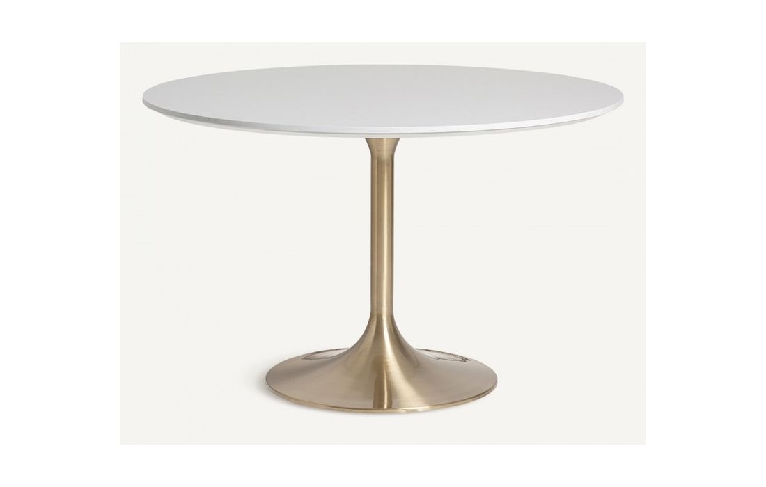 Round dining table made of porcelain combined with golden steel.Dimensions in cm