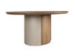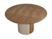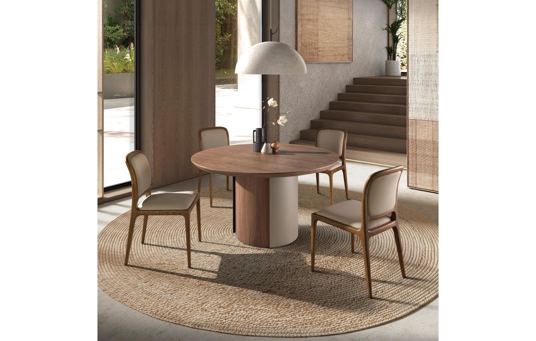 Modern round dining table with fixed top in natural walnut veneer and stainless steel legsRecipient :